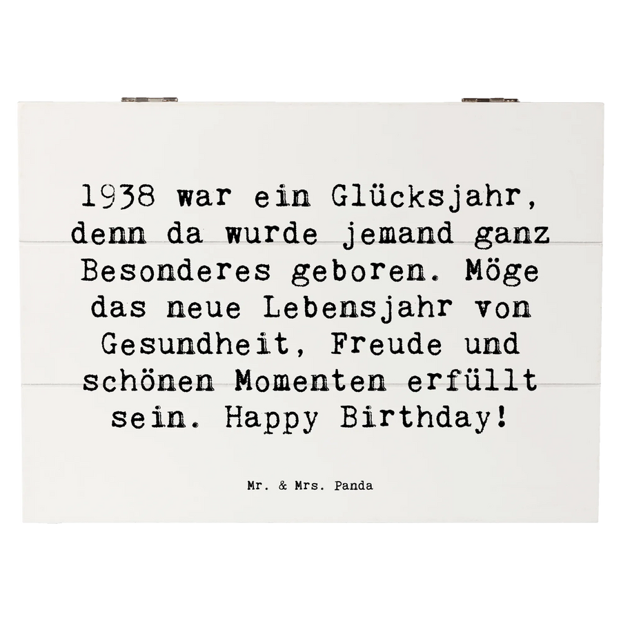 Wooden chest Saying 1938 war ein Glücksjahr, denn da wurde jemand ganz Besonderes geboren. Möge das neue Lebensjahr von Gesundheit, Freude und schönen Momenten erfüllt sein. Happy Birthday! - 25 x 18 cm - White