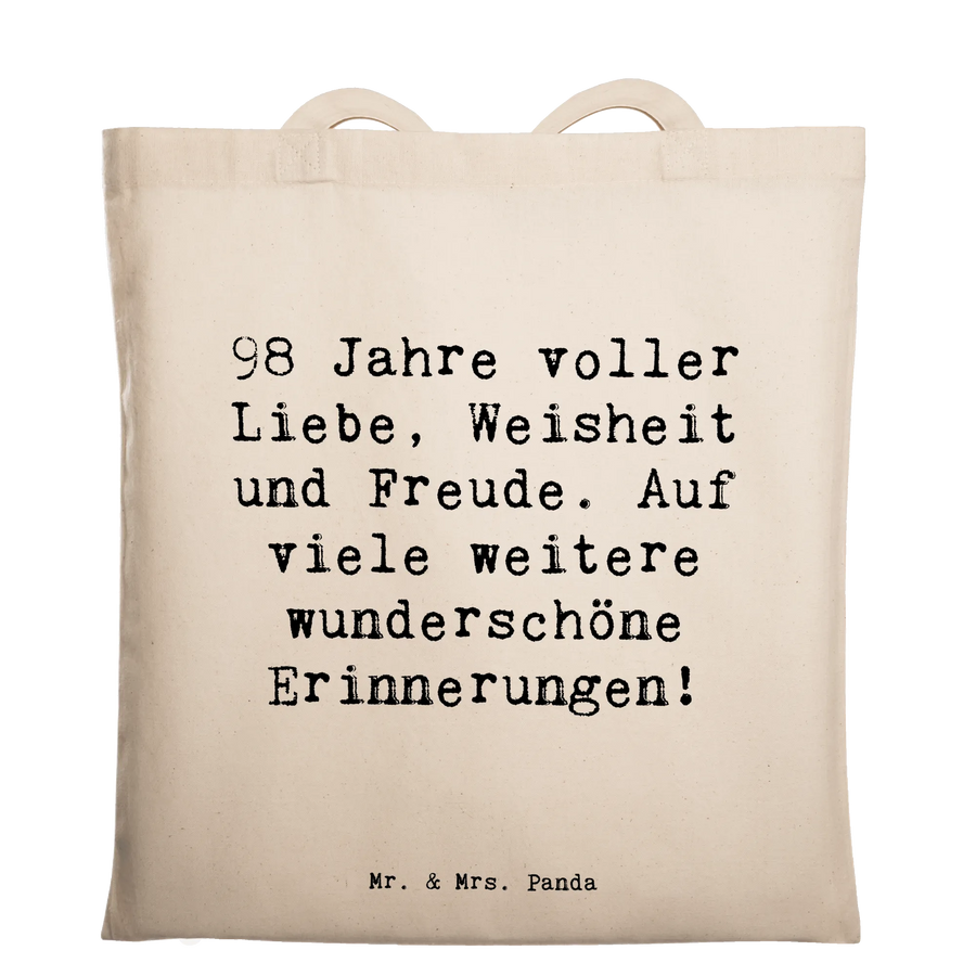 Tote bag Saying 98 Jahre voller Liebe, Weisheit und Freude. Auf viele weitere wunderschöne Erinnerungen! - Transparent