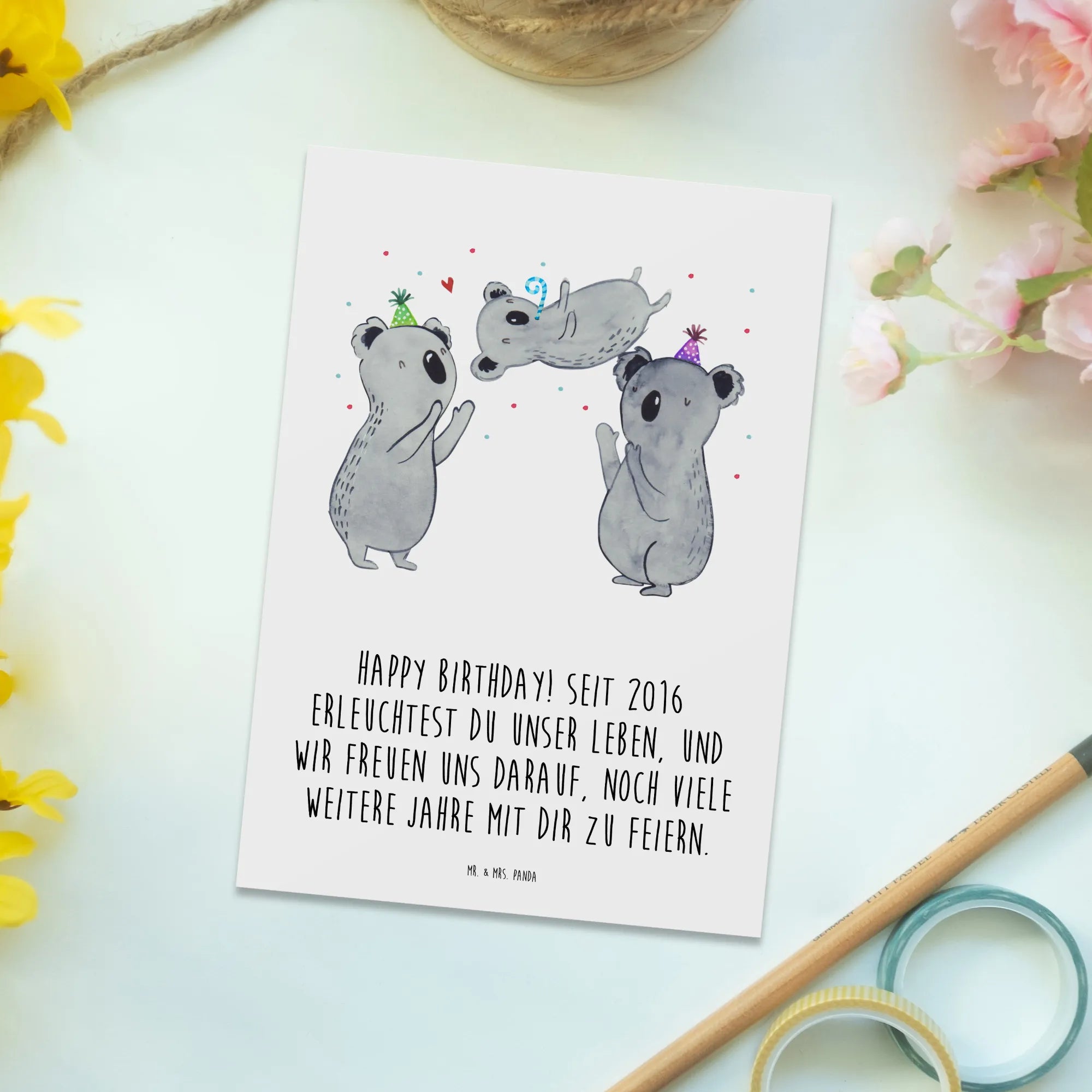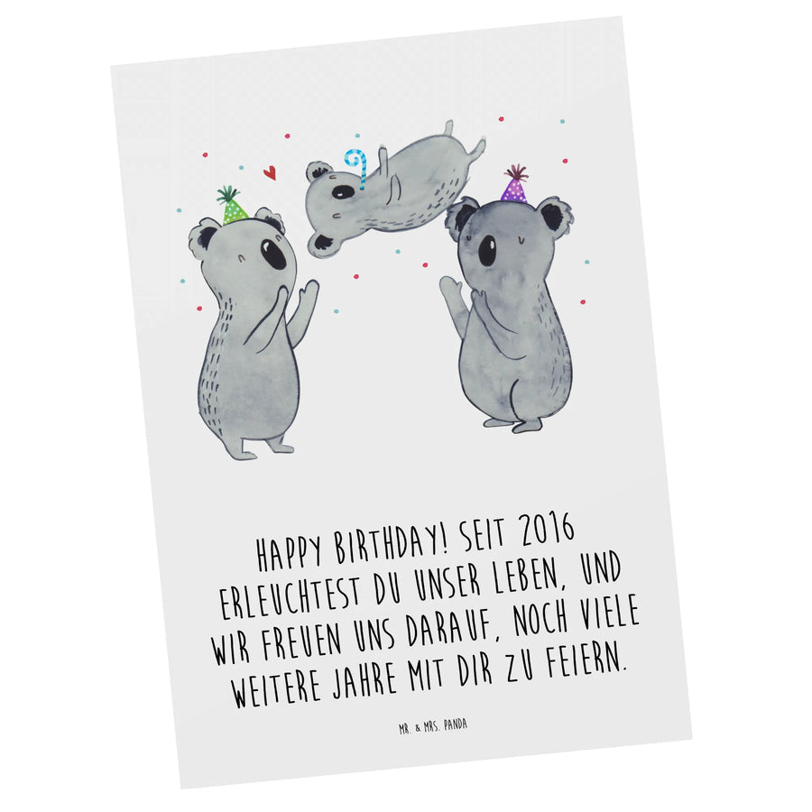 Postcard Happy Birthday! Seit 2016 erleuchtest du unser Leben, und wir freuen uns darauf, noch viele weitere Jahre mit dir zu feiern.