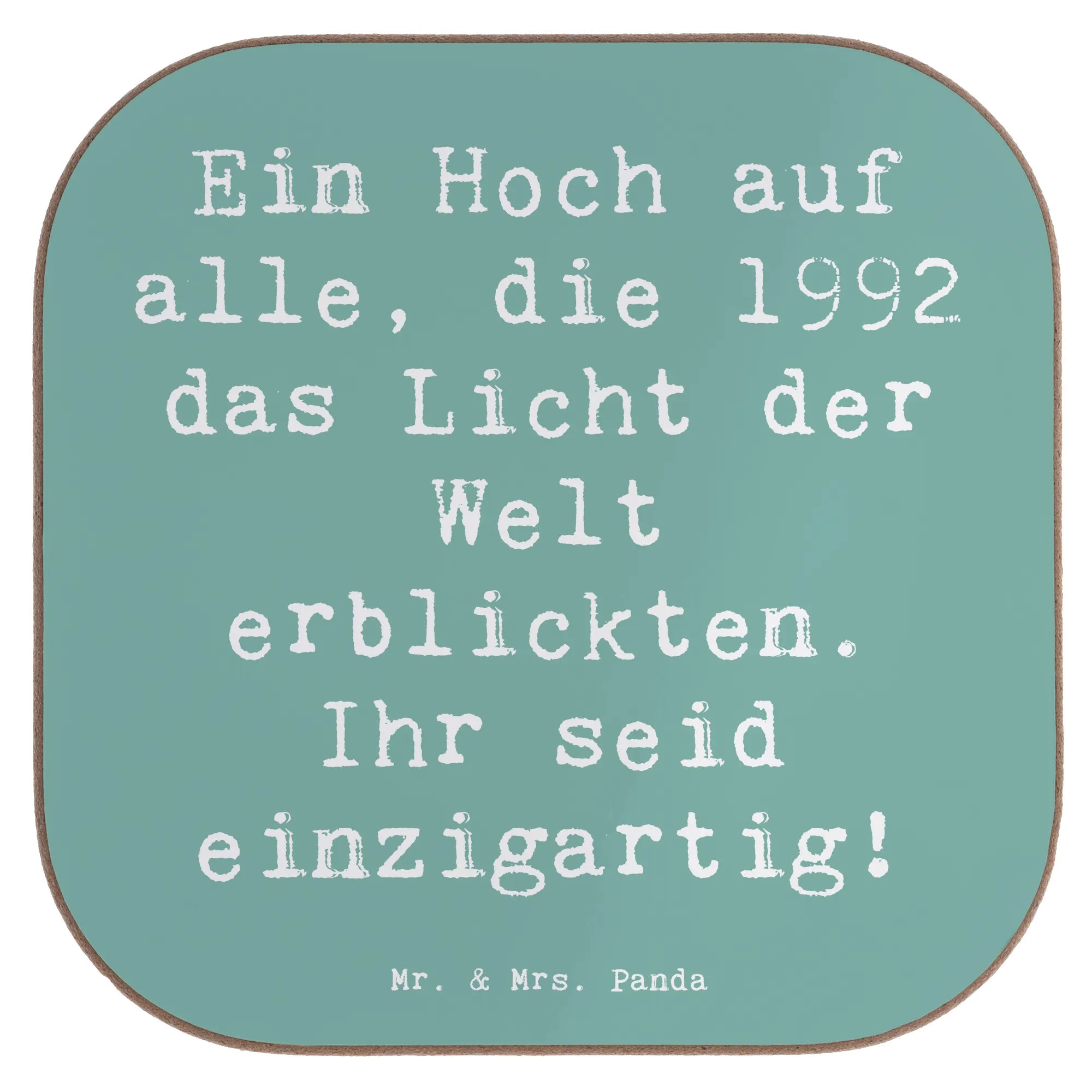 Square coaster Saying Ein Hoch auf alle, die 1992 das Licht der Welt erblickten. Ihr seid einzigartig! - Sea Breeze
