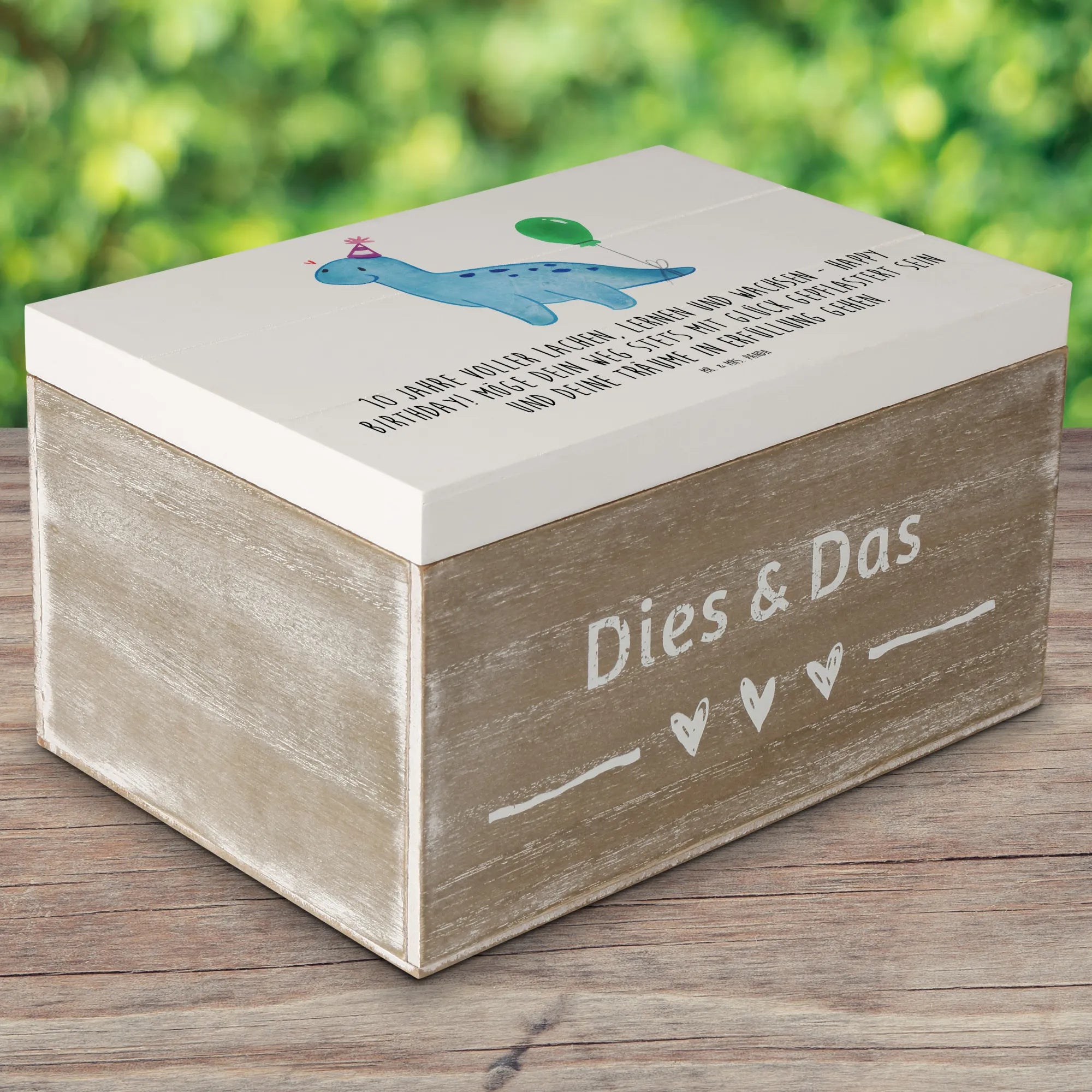 Wooden chest 10 Jahre voller Lachen, Lernen und Wachsen - Happy Birthday! Möge dein Weg stets mit Glück gepflastert sein und deine Träume in Erfüllung gehen. - 19 x 12 cm