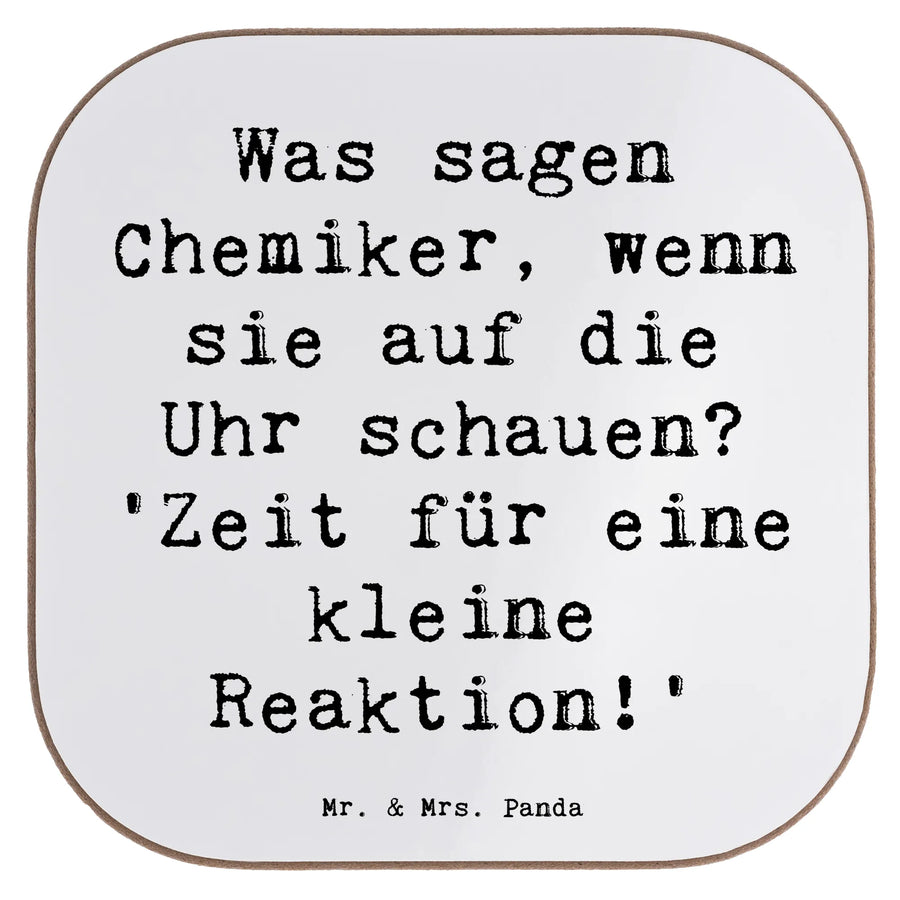 Square coaster Saying Was sagen Chemiker, wenn sie auf die Uhr schauen? 'Zeit für eine kleine Reaktion!' - White