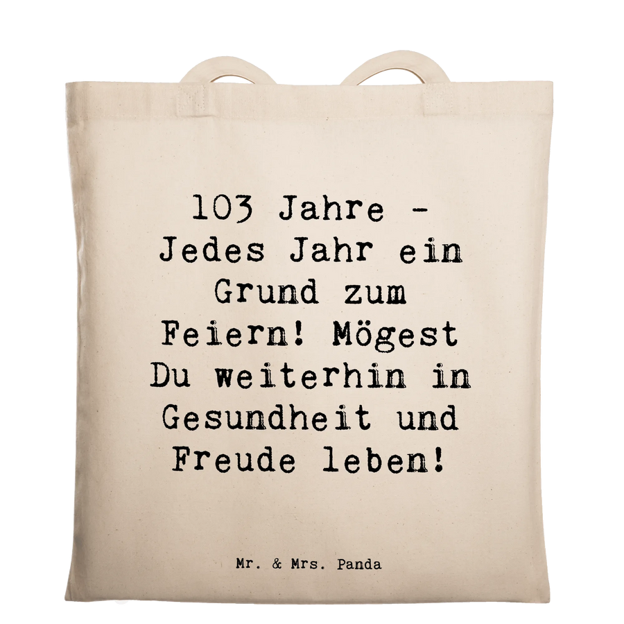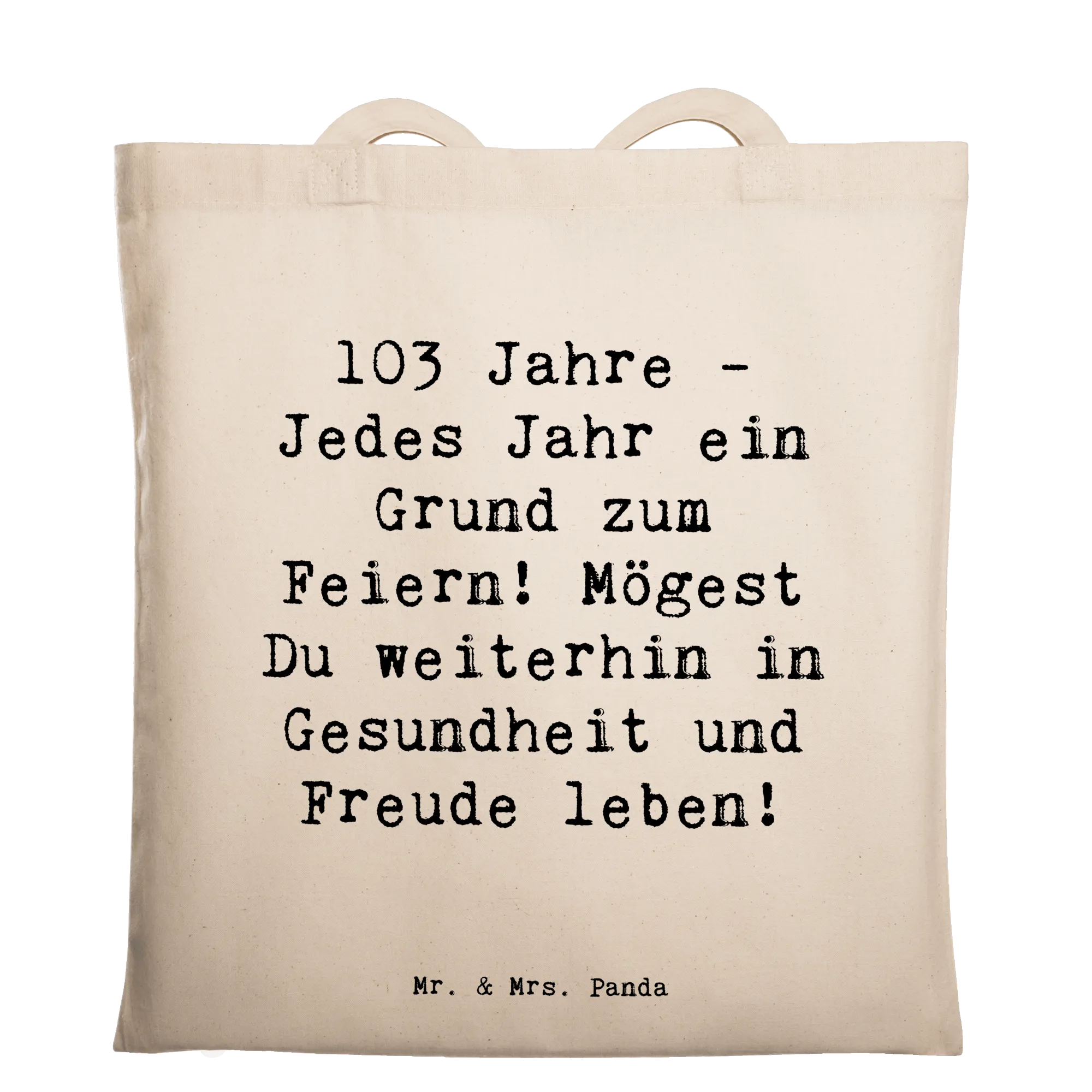 Tote bag Saying 103 Jahre - Jedes Jahr ein Grund zum Feiern! Mögest Du weiterhin in Gesundheit und Freude leben! - Transparent