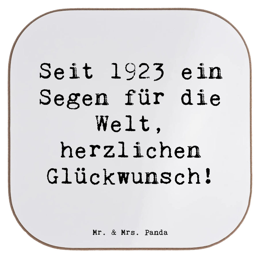 Square coaster Saying Seit 1923 ein Segen für die Welt, herzlichen Glückwunsch! - White
