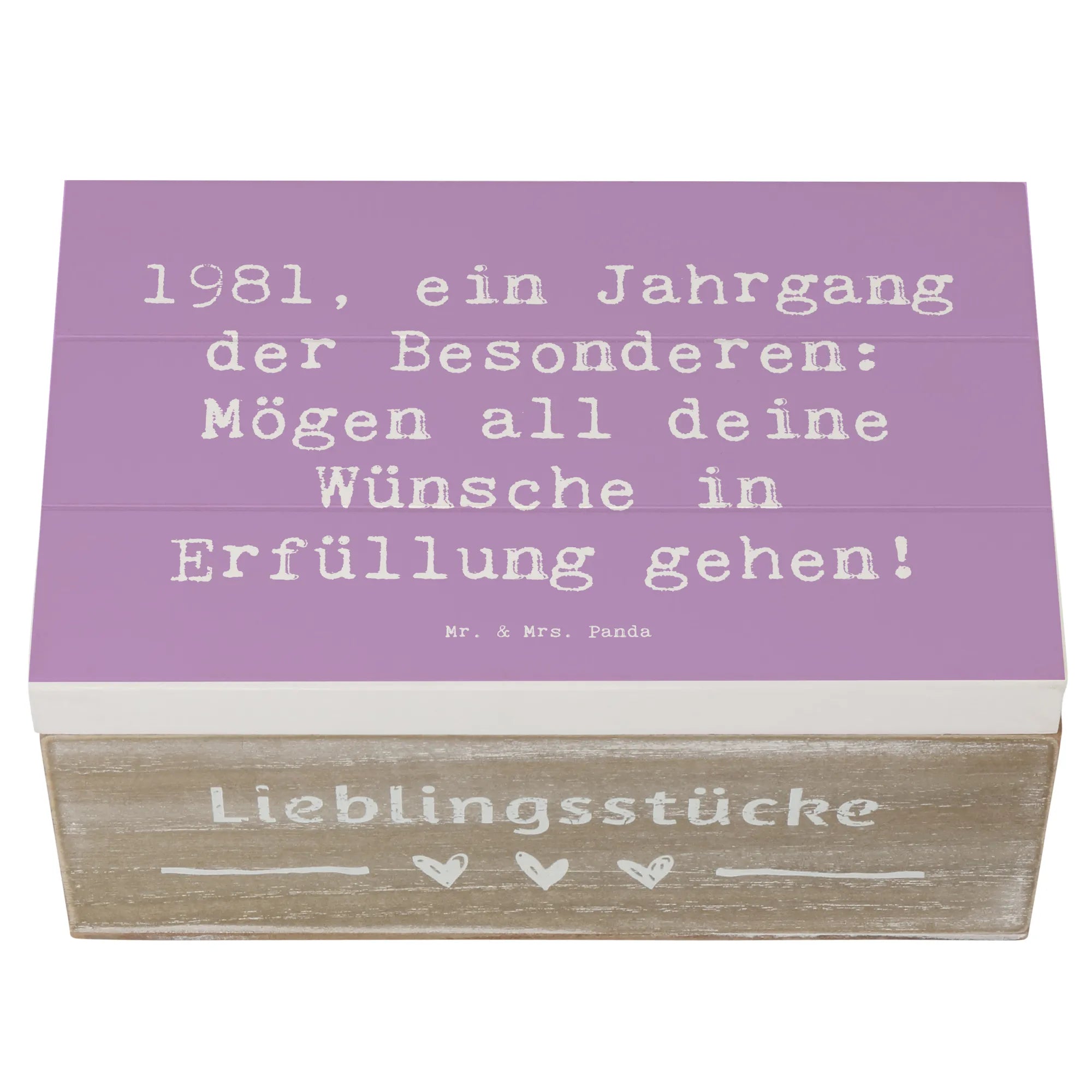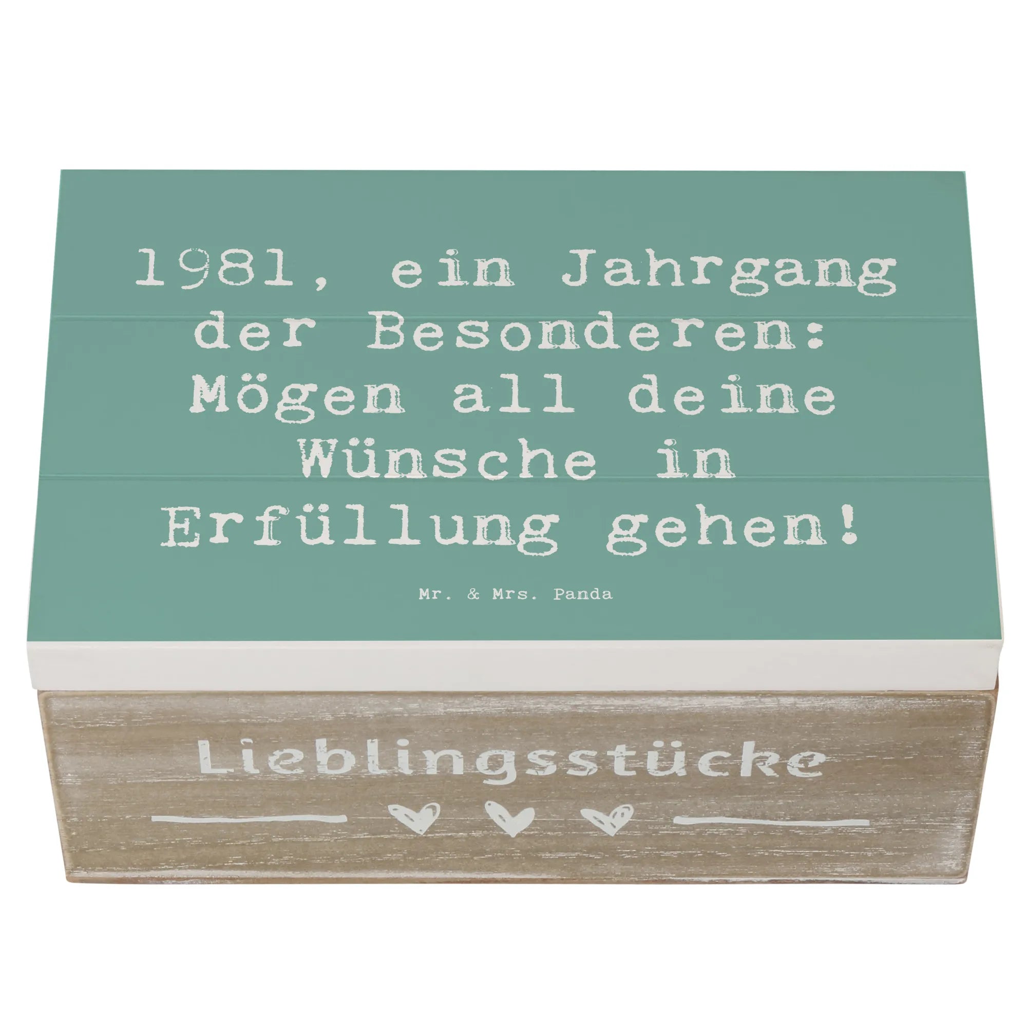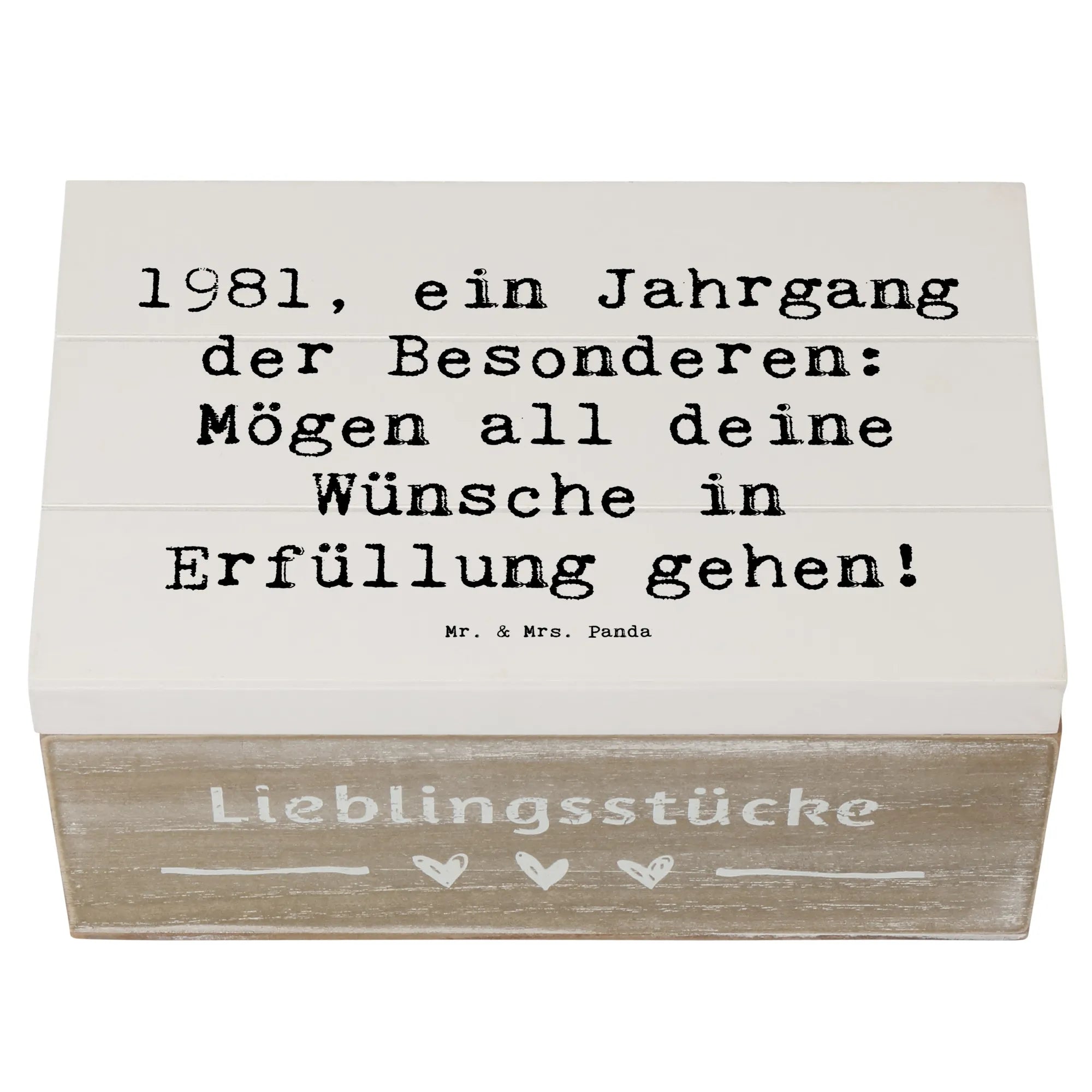 Wooden chest Saying 1981, ein Jahrgang der Besonderen: Mögen all deine Wünsche in Erfüllung gehen! - 22 x 15 cm - White