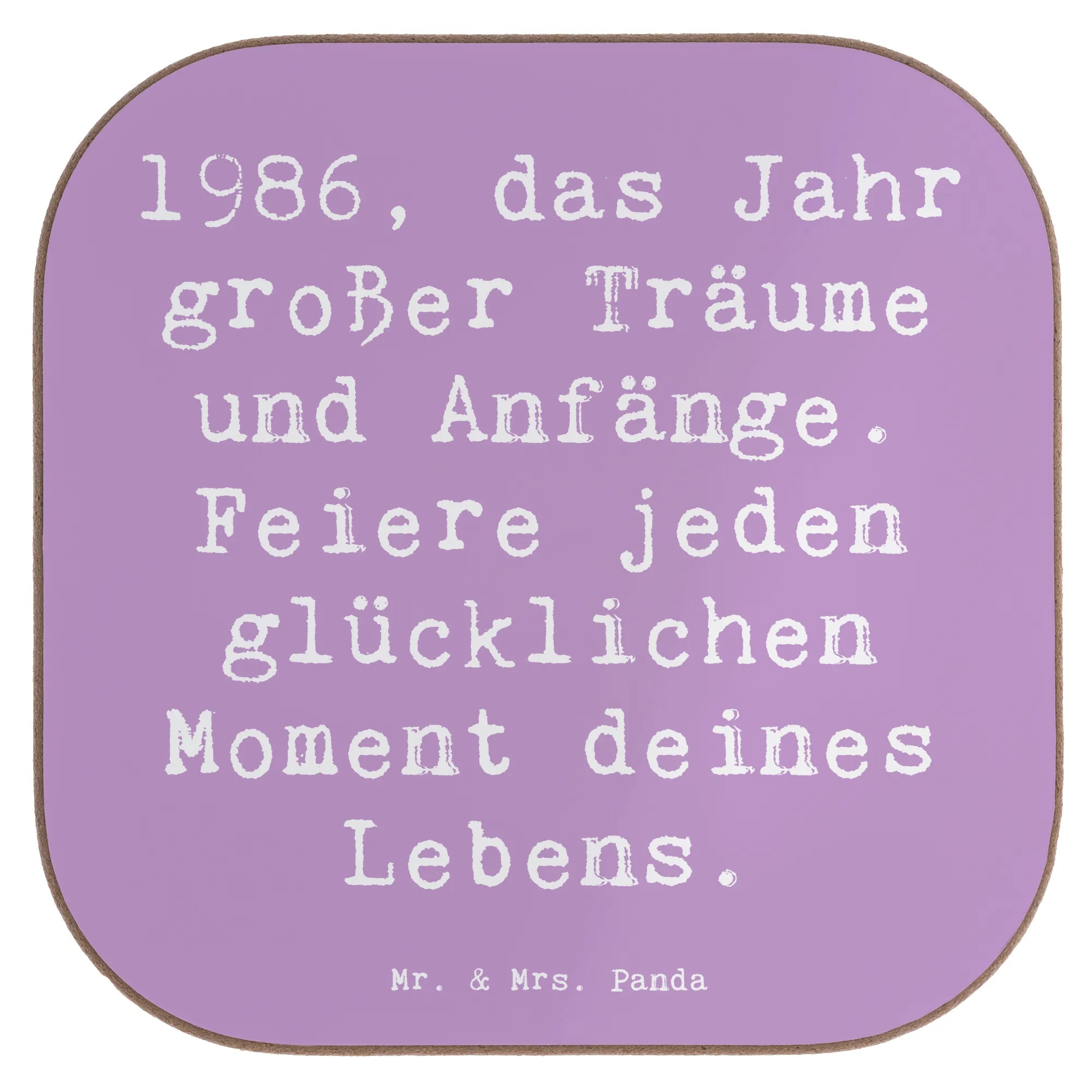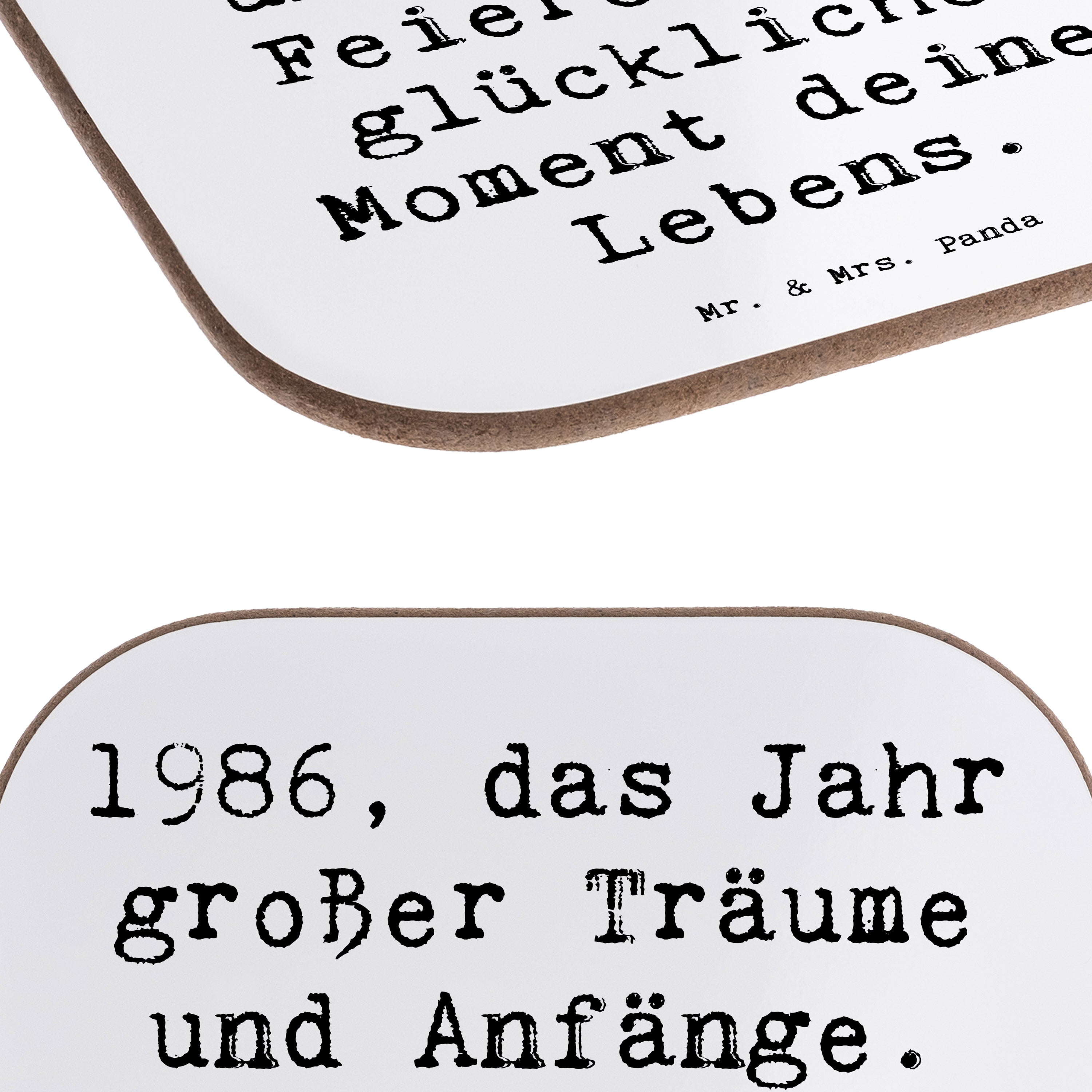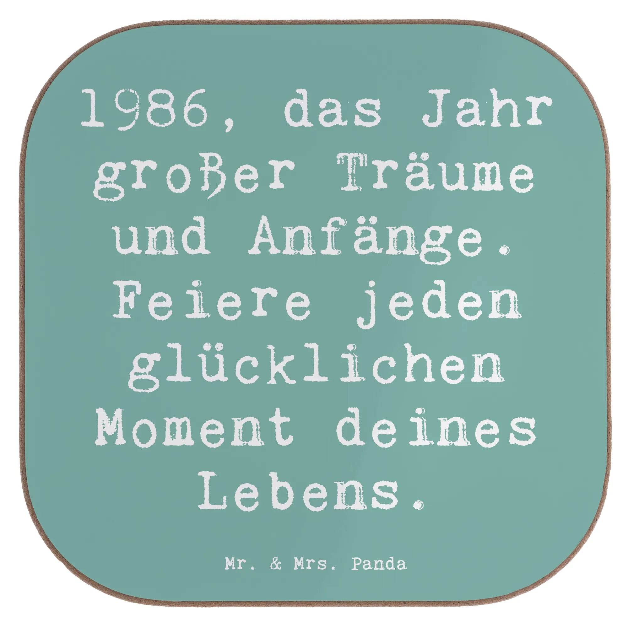 Square coaster Saying 1986, das Jahr großer Träume und Anfänge. Feiere jeden glücklichen Moment deines Lebens. - White