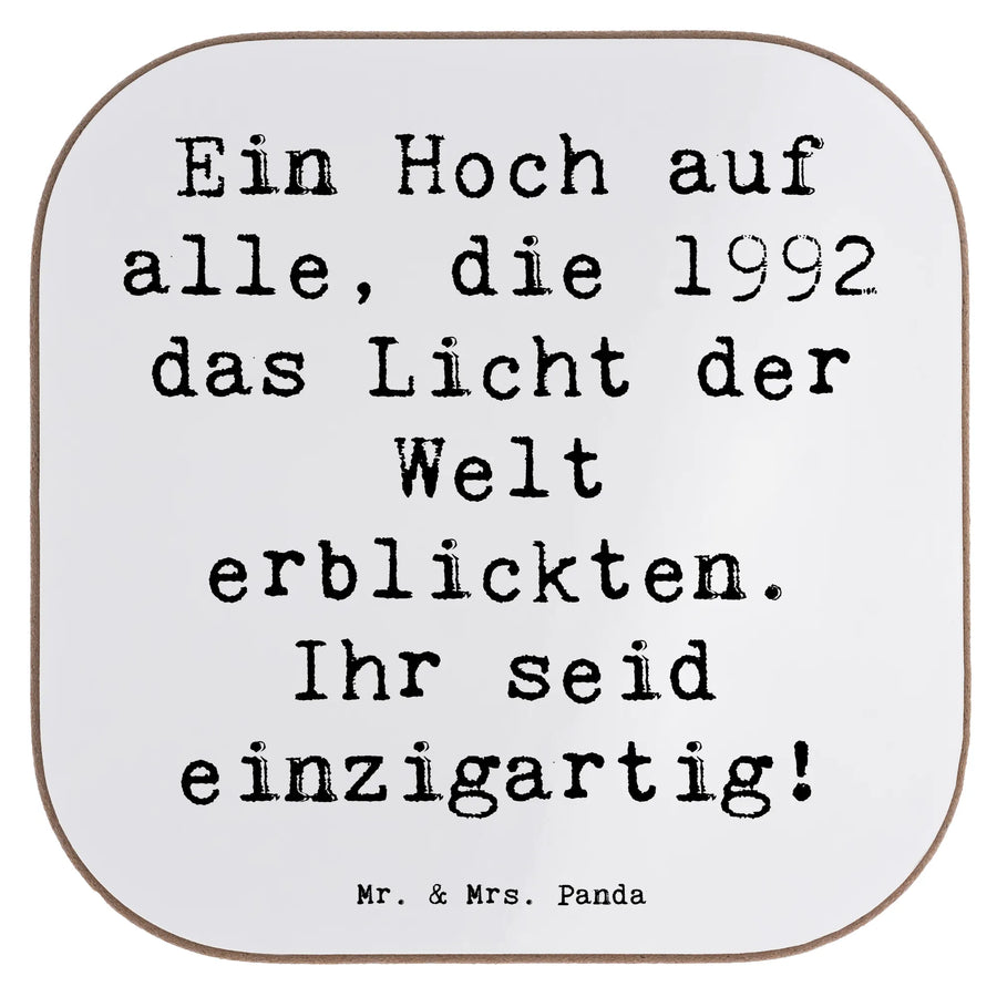 Square coaster Saying Ein Hoch auf alle, die 1992 das Licht der Welt erblickten. Ihr seid einzigartig! - White