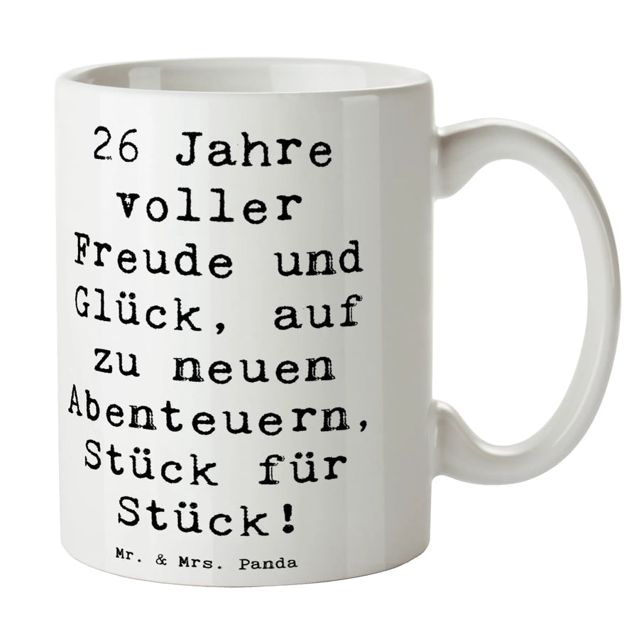 Mug Saying 26 Jahre voller Freude und Glück, auf zu neuen Abenteuern, Stück für Stück! - White