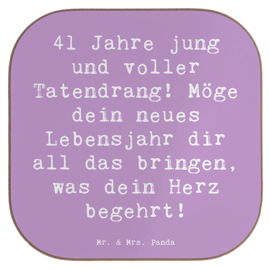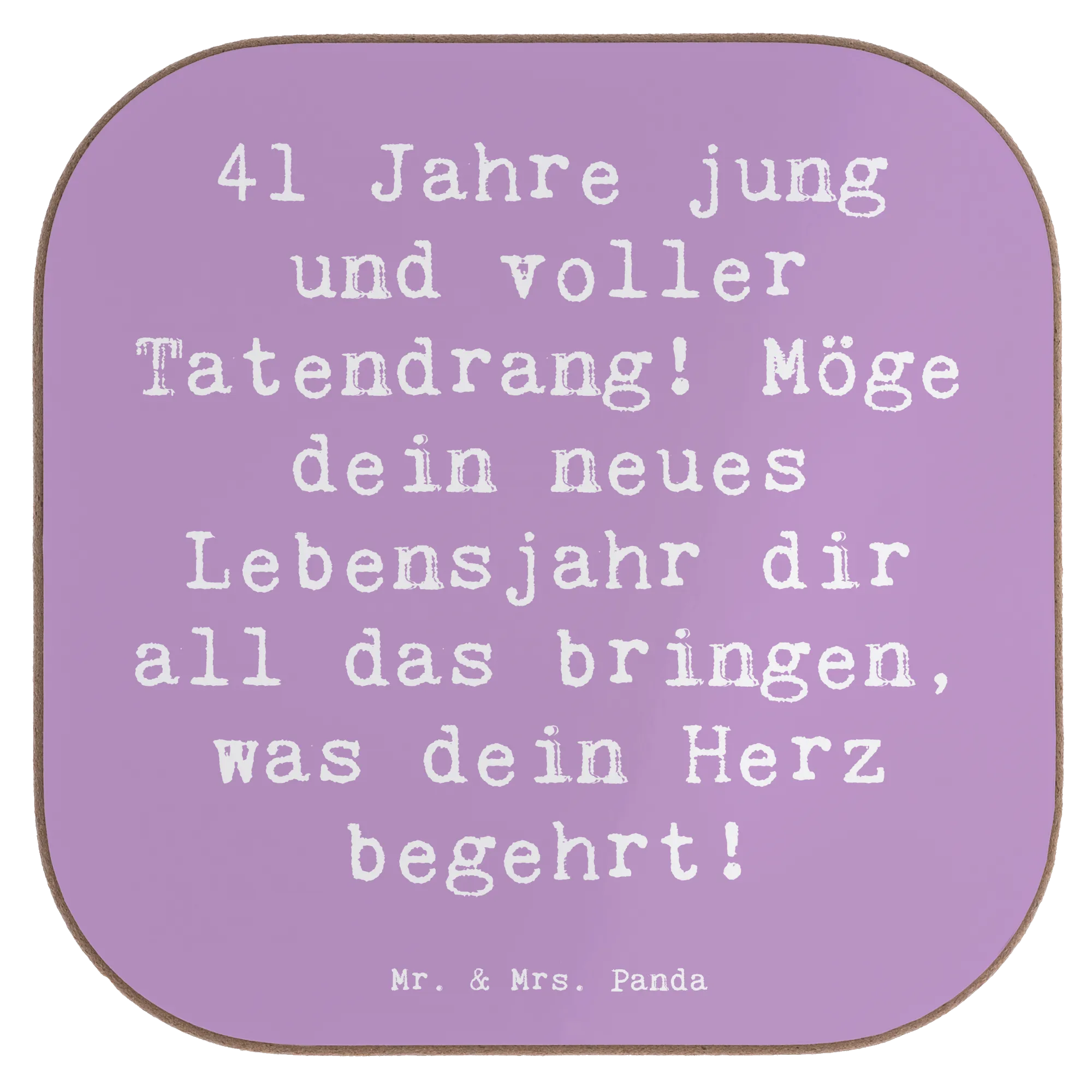 Square coaster Saying 41 Jahre jung und voller Tatendrang! Möge dein neues Lebensjahr dir all das bringen, was dein Herz begehrt! - Lavender Dream
