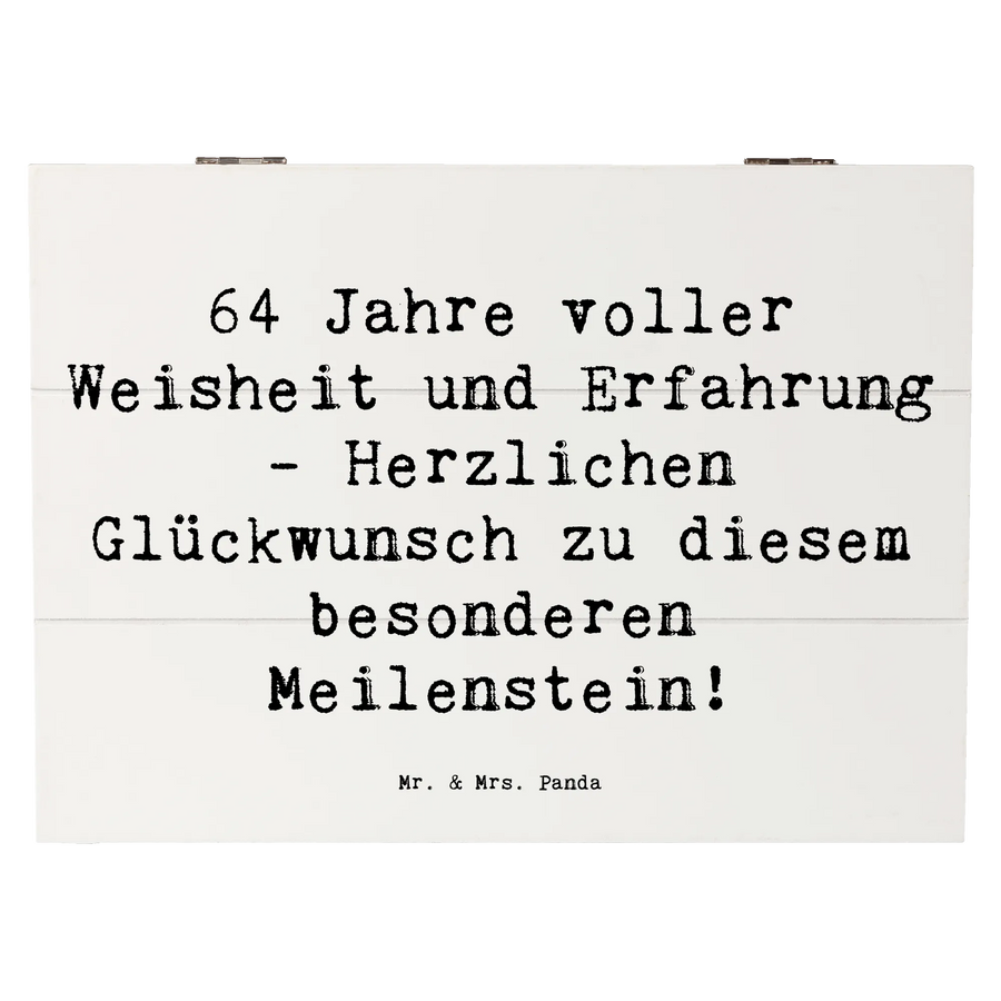 Wooden chest Saying 64 Jahre voller Weisheit und Erfahrung - Herzlichen Glückwunsch zu diesem besonderen Meilenstein! - 25 x 18 cm - White