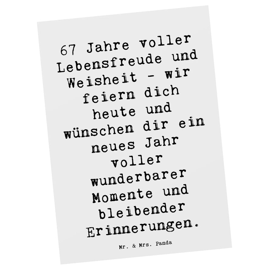 Postcard Saying 67 Jahre voller Lebensfreude und Weisheit - wir feiern dich heute und wünschen dir ein neues Jahr voller wunderbarer Momente und bleibender Erinnerungen. - White