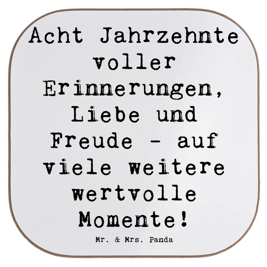 Square coaster Saying Acht Jahrzehnte voller Erinnerungen, Liebe und Freude - auf viele weitere wertvolle Momente! - White