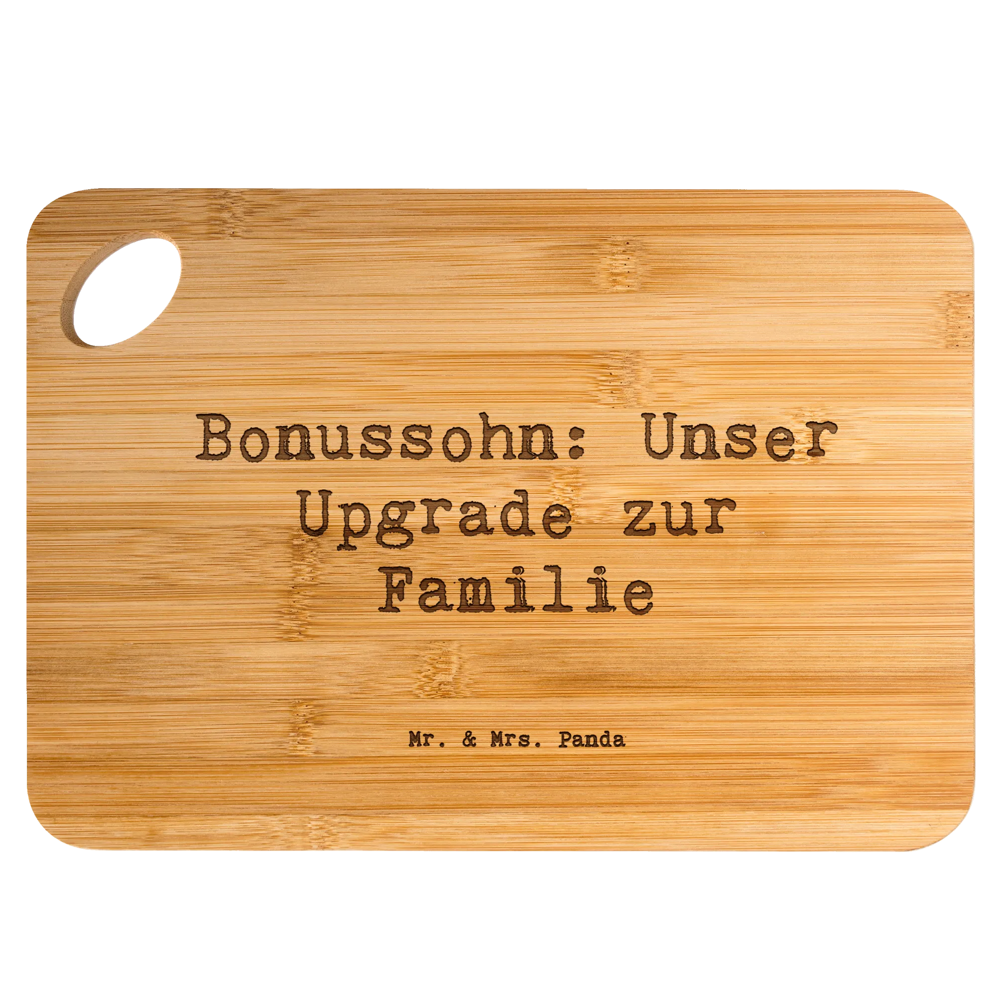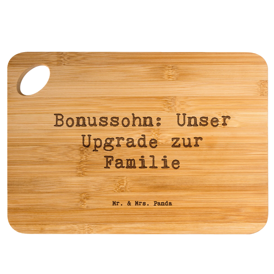Mr. & Mrs. Panda Frühstücksbrett „Bonussohn: Unser Upgrade zur Familie“
