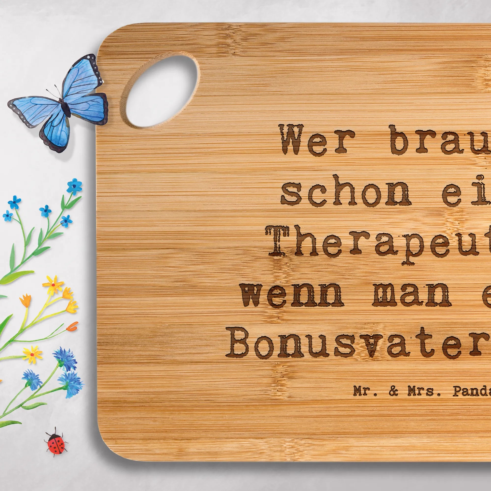 Bamboo chopping board Saying Wer braucht schon einen Therapeuten, wenn man einen Bonusvater hat?