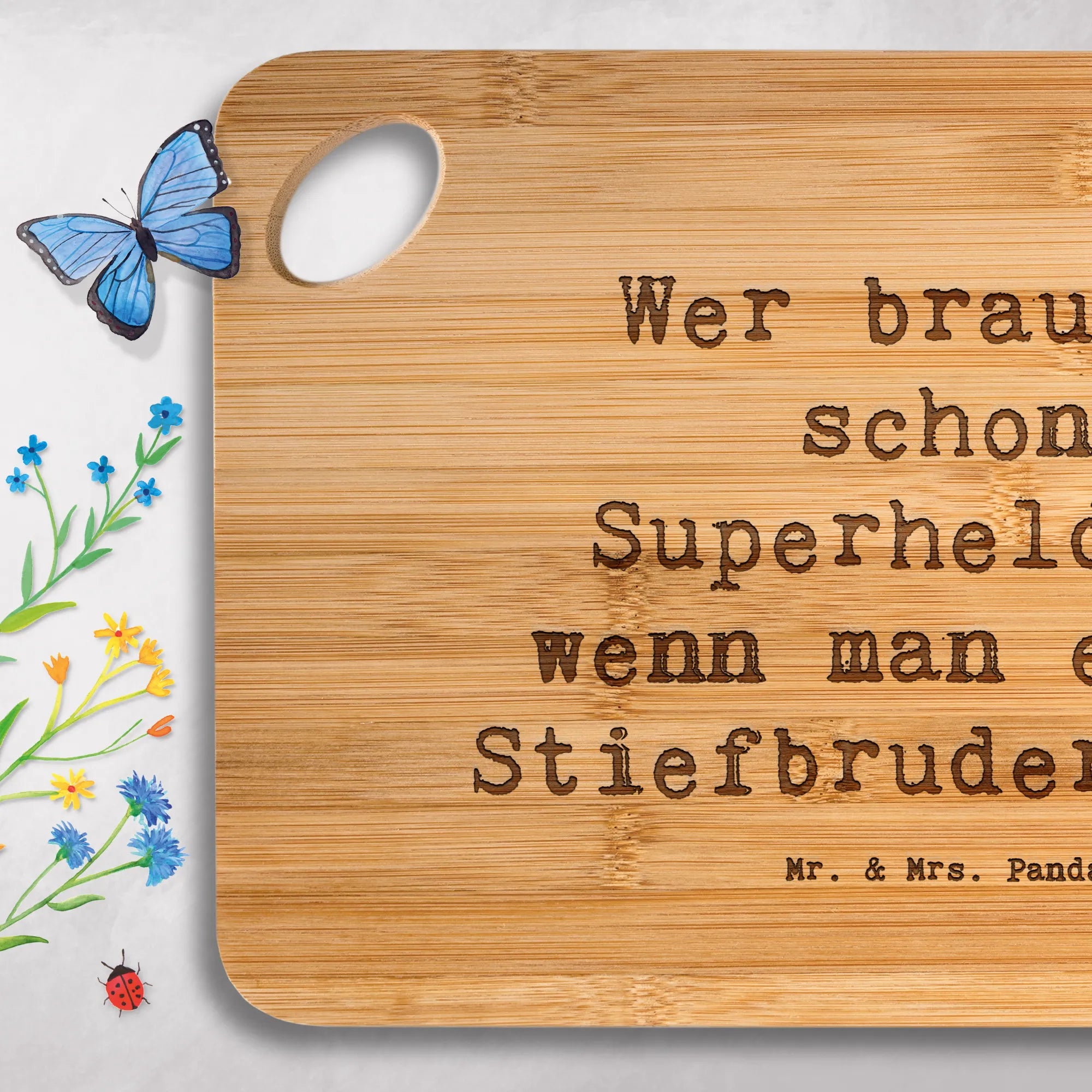 Bamboo chopping board Saying Wer braucht schon Superhelden, wenn man einen Stiefbruder hat?