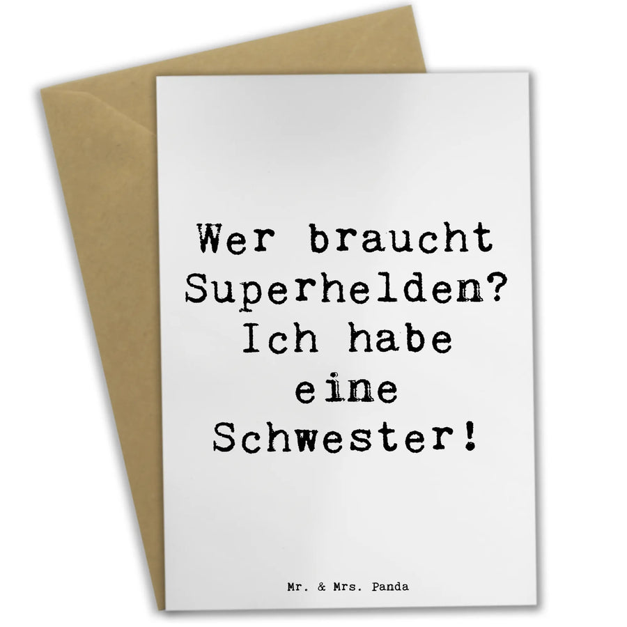 Greetings card Saying Wer braucht Superhelden? Ich habe eine Schwester!
