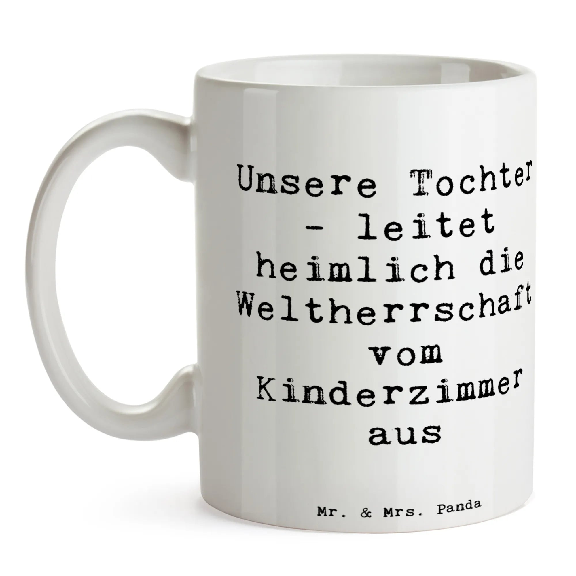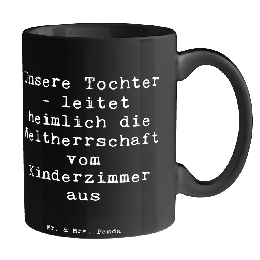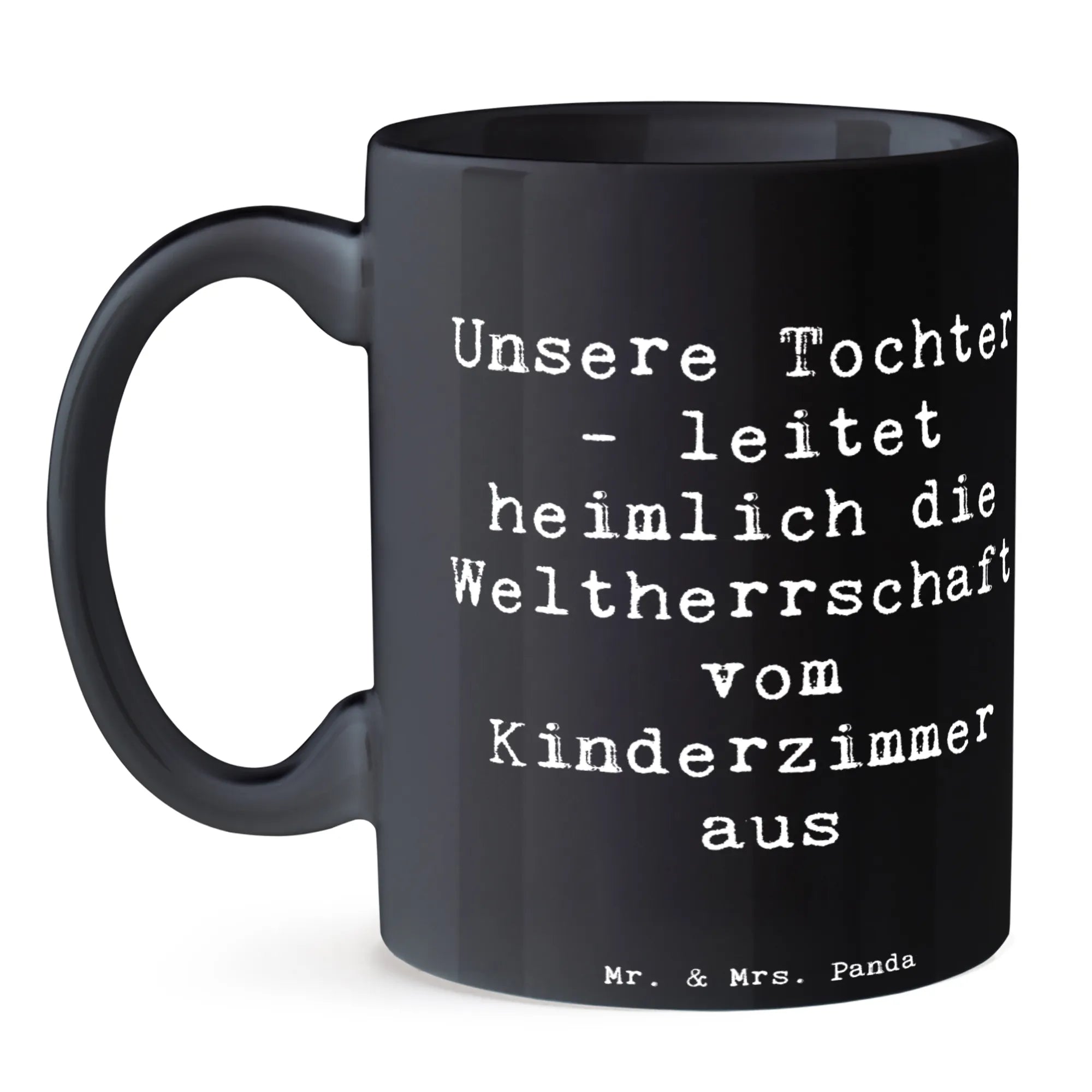 Mug Saying Unsere Tochter leitet heimlich die Weltherrschaft vom Kinderzimmer aus. - Black
