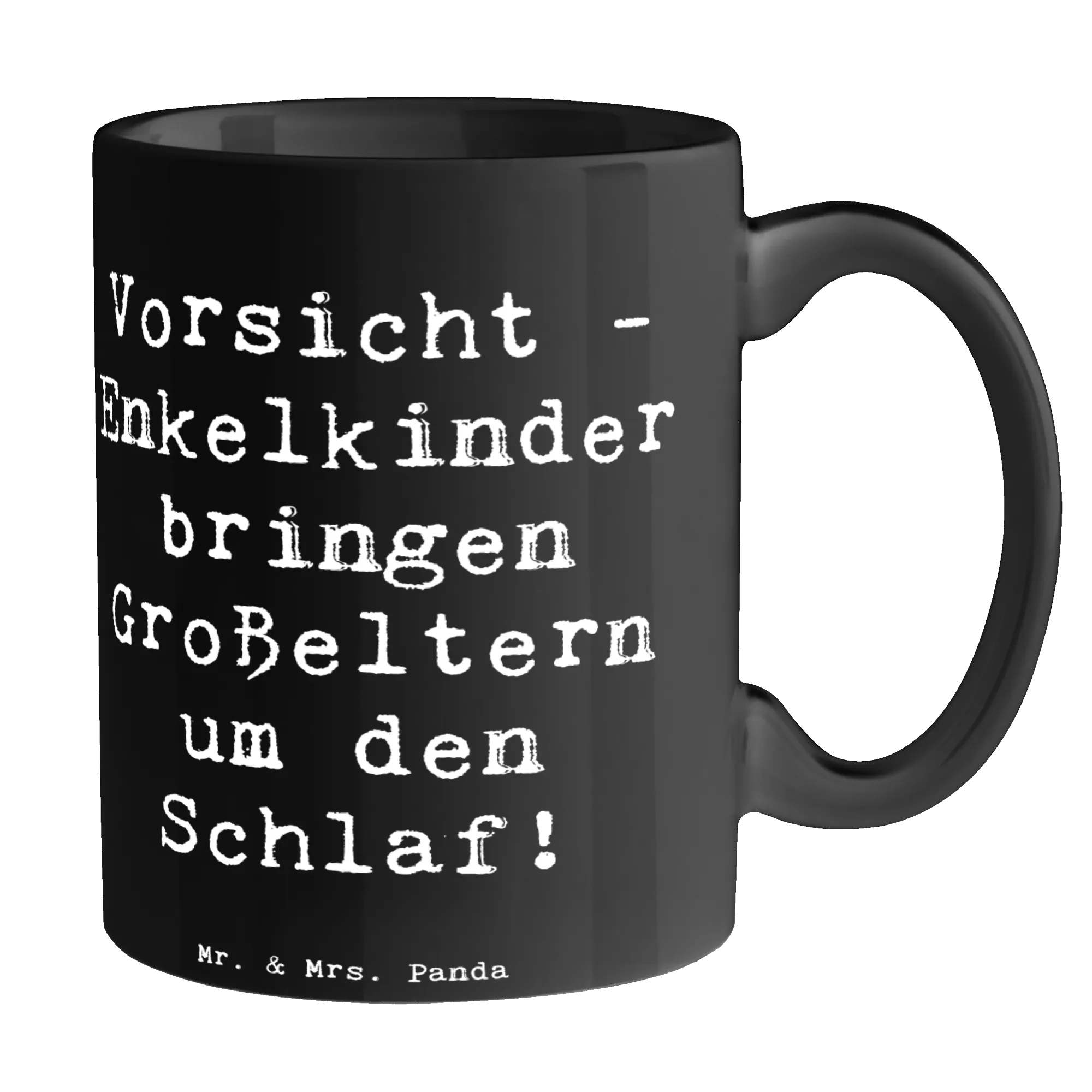 Mug Saying Vorsicht: Enkelkinder bringen Großeltern um den Schlaf! - Black