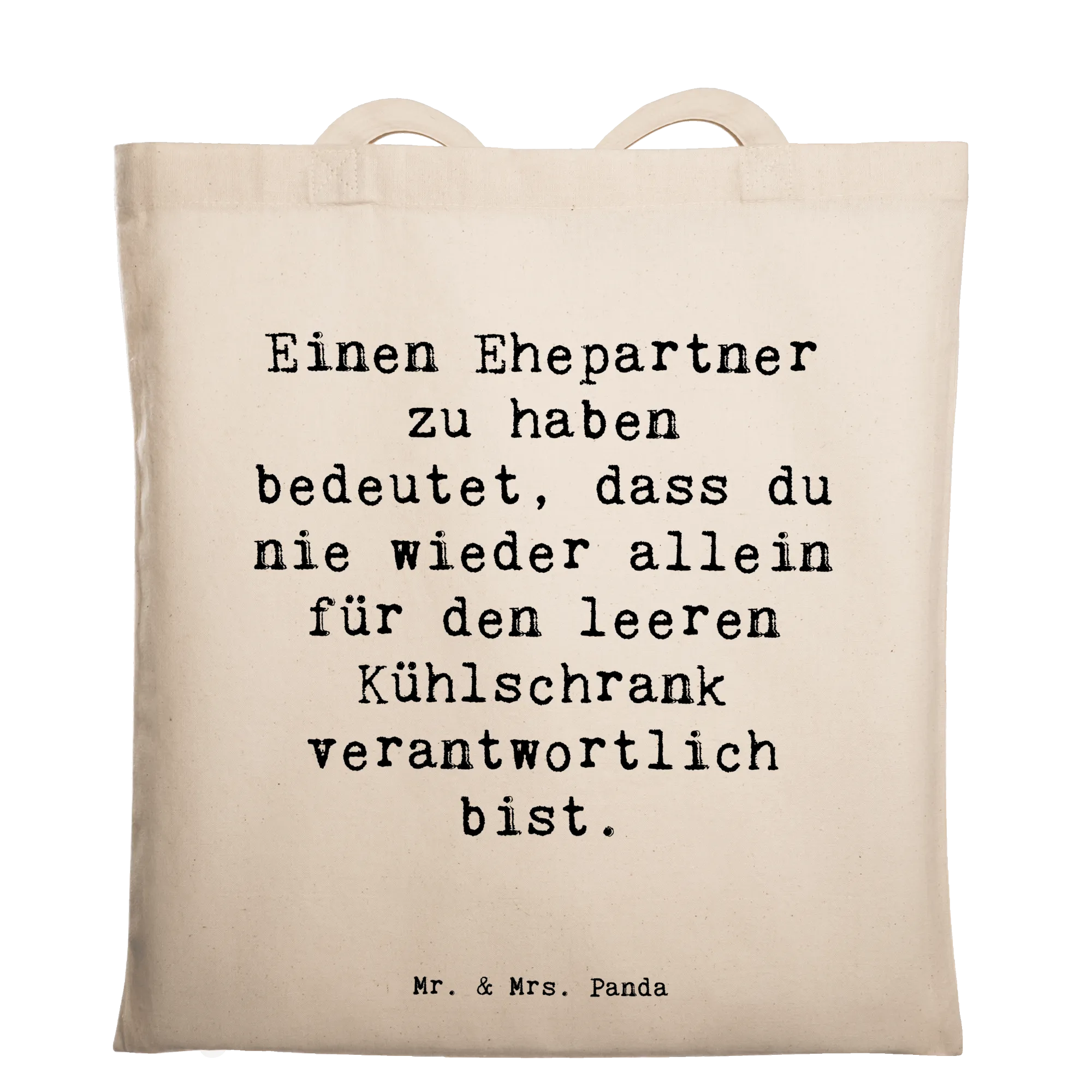 Tote bag Saying Einen Ehepartner zu haben bedeutet, dass du nie wieder allein für den leeren Kühlschrank verantwortlich bist. - Transparent