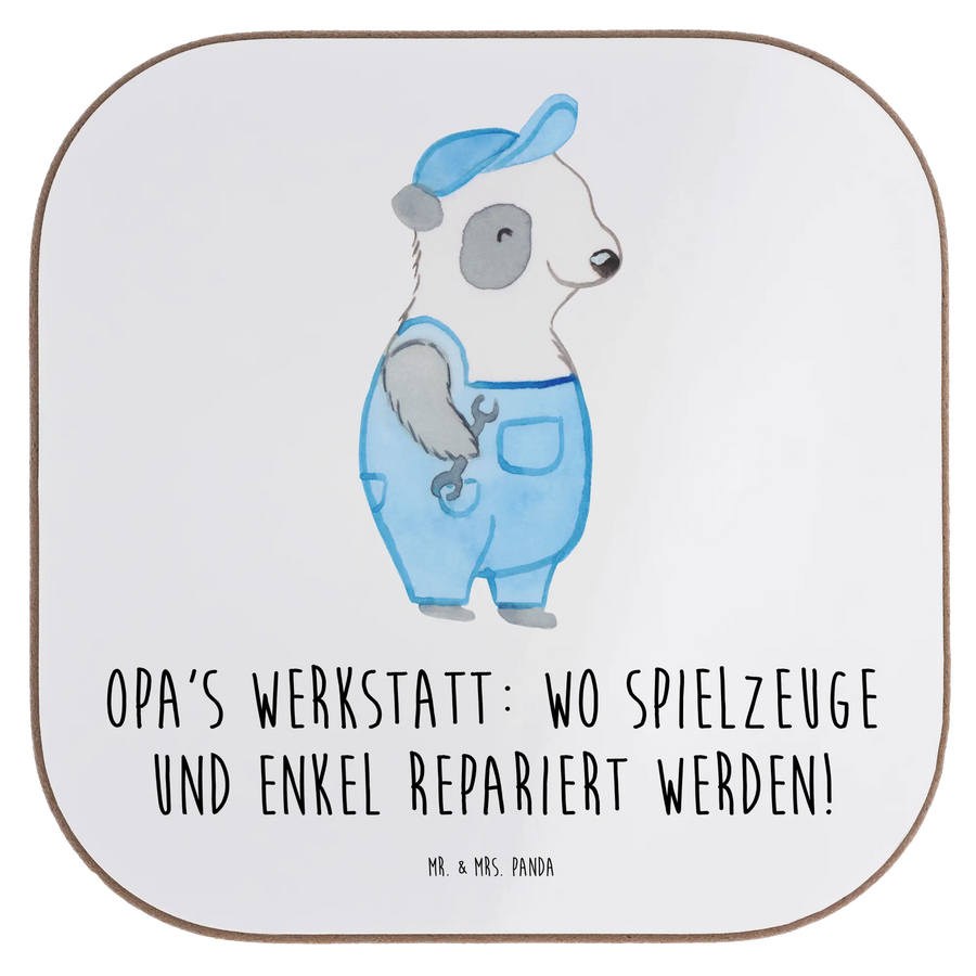 Square coaster Opa's Werkstatt: wo Spielzeuge und Enkel repariert werden! - White