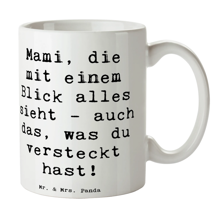 Mug Saying Mami, die mit einem Blick alles sieht, auch das, was du versteckt hast! - White