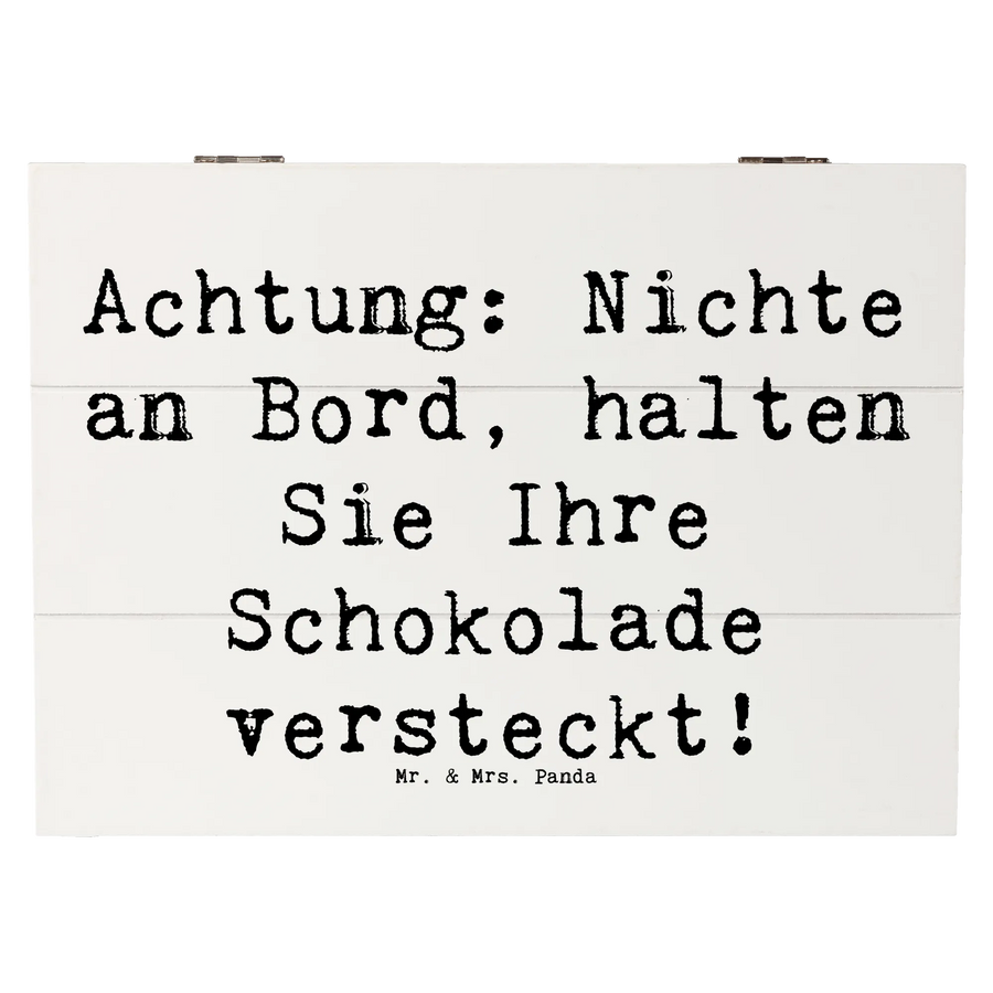 Wooden chest Saying Achtung: Nichte an Bord, halten Sie Ihre Schokolade versteckt! - 25 x 18 cm - White