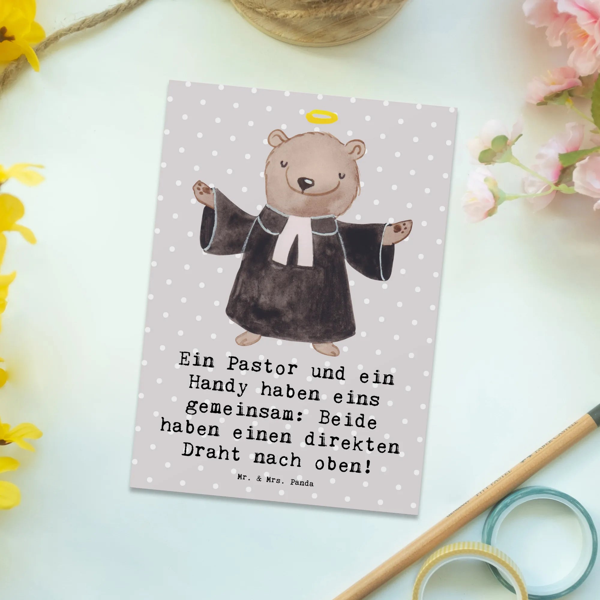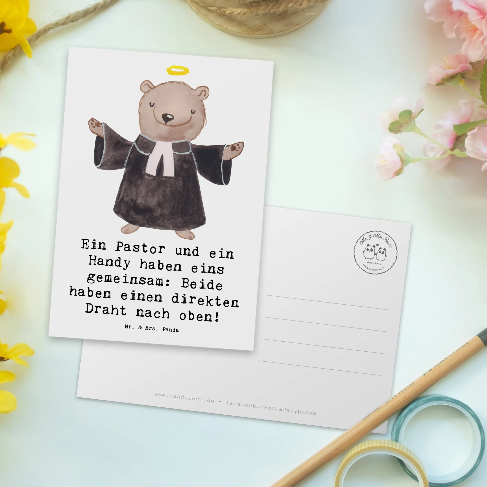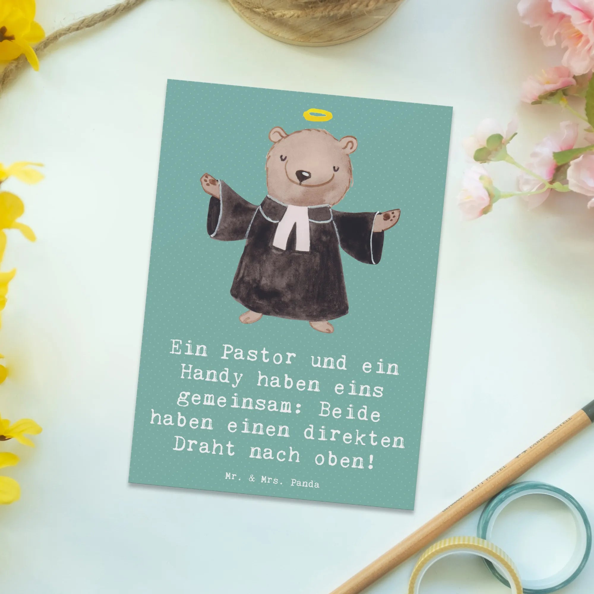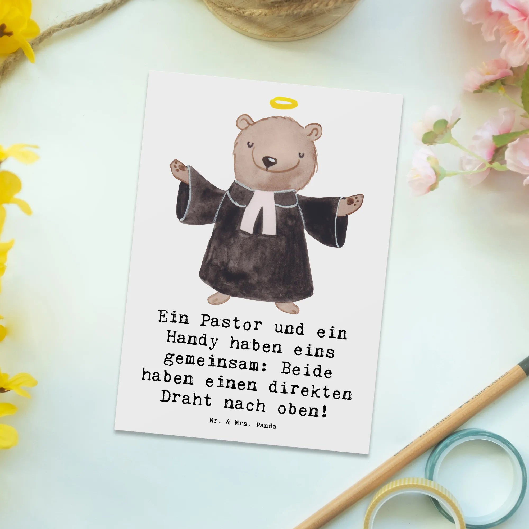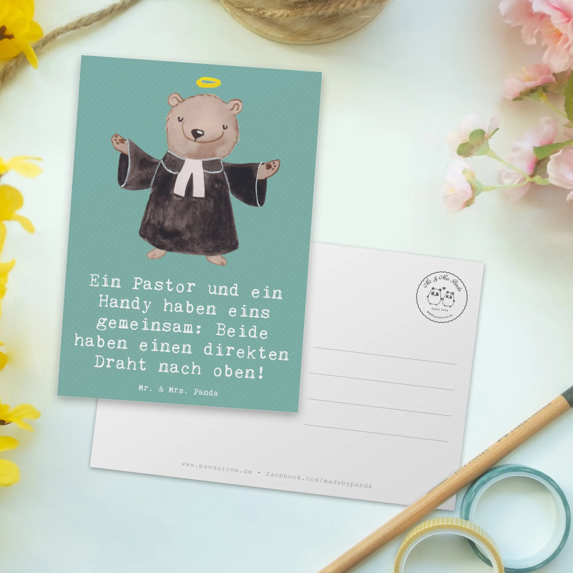 Postcard Ein Pastor und ein Handy haben eins gemeinsam: Beide haben ei – Mr. & Mrs. Panda