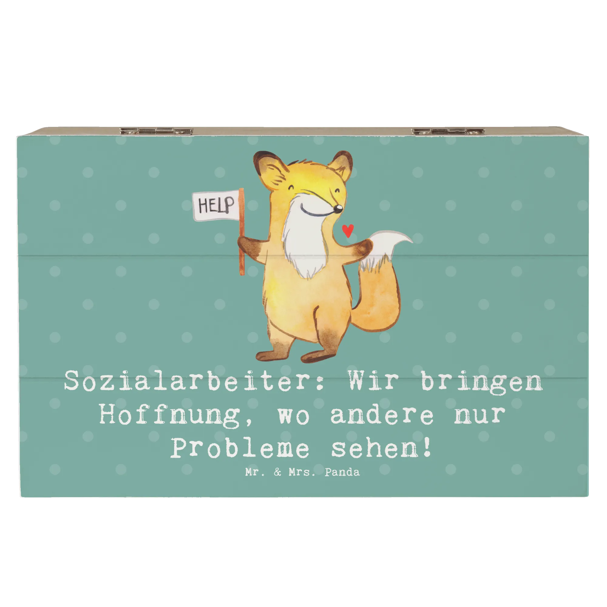 Diese zauberhafte Holzkiste von Mr. & Mrs. Panda trägt das liebevoll gezeichnete Motiv „Sozialarbeiterin“ und den inspirierenden Spruch „Sozialarbeiter: Wir bringen Hoffnung, wo andere nur Probleme sehen!“. Sie ist die perfekte Geschenkidee für Sozialarbeiterinnen und Sozialarbeiter, die täglich mit Empathie, Engagement und Herzblut bei der Sache sind. 🎁