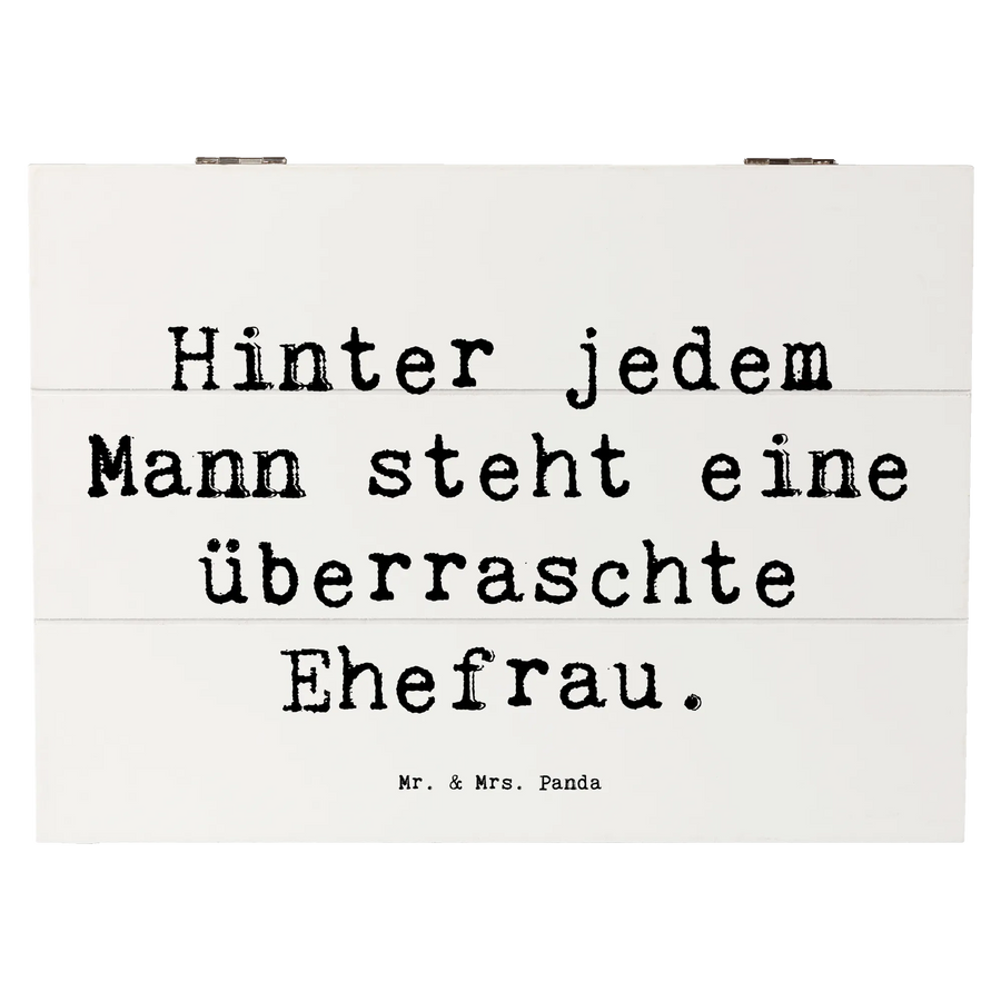 Wooden chest Saying Hinter jedem Mann steht eine überraschte Ehefrau. - 25 x 18 cm - White