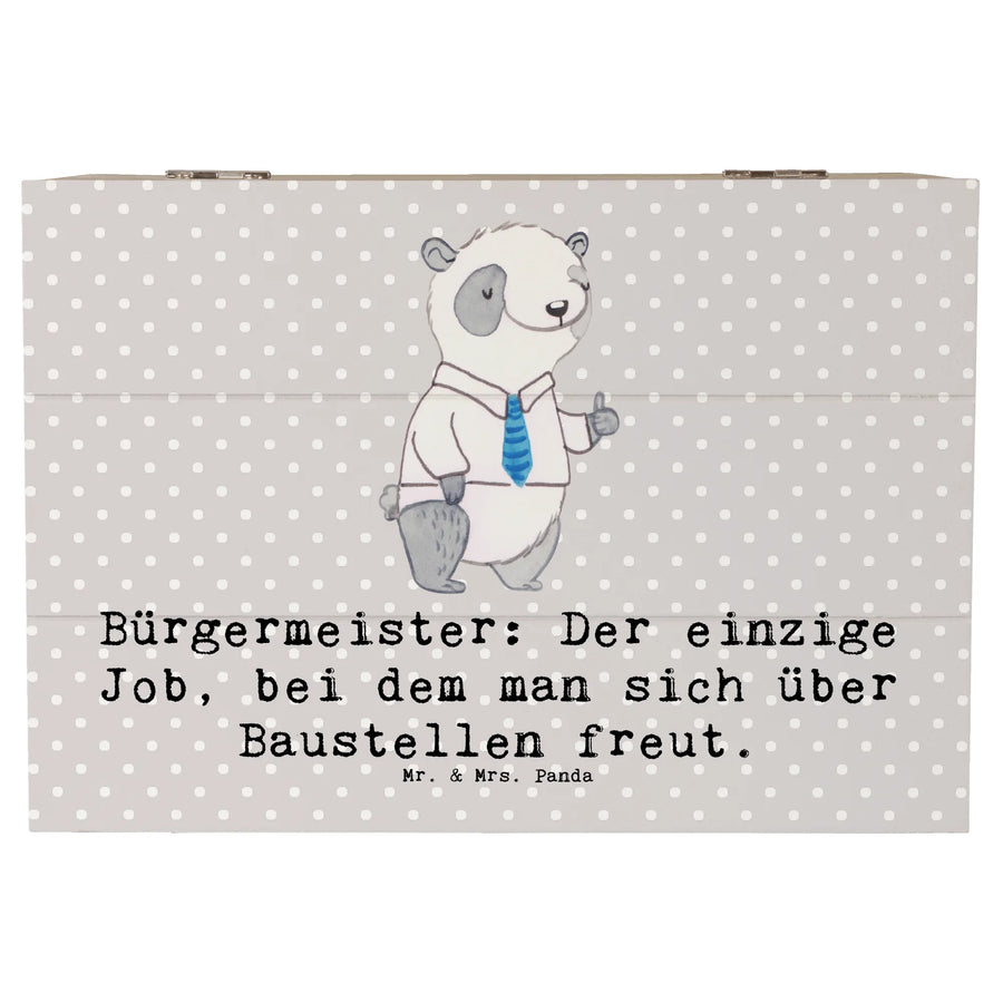 Wooden chest Bürgermeister: Der einzige Job, bei dem man sich über Baustellen freut. - 22 x 15 cm - Grey Pastel