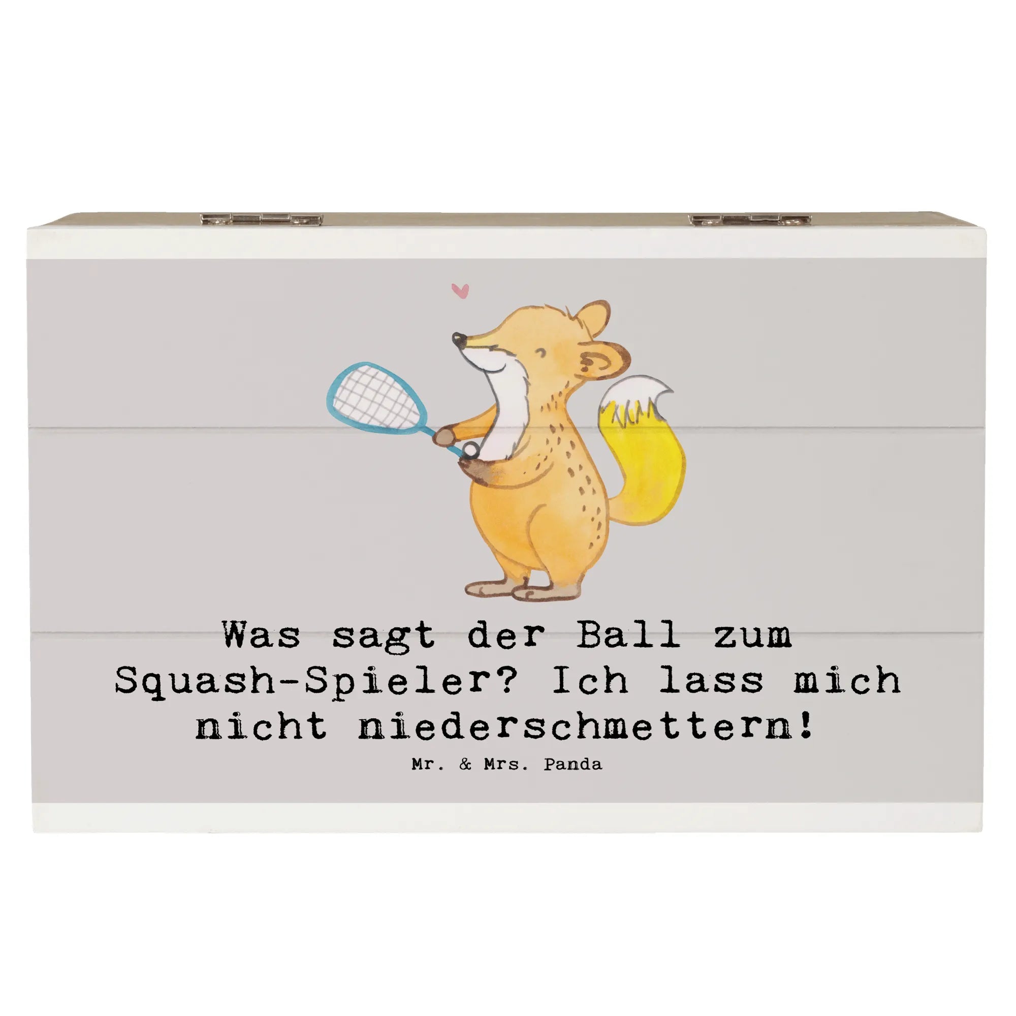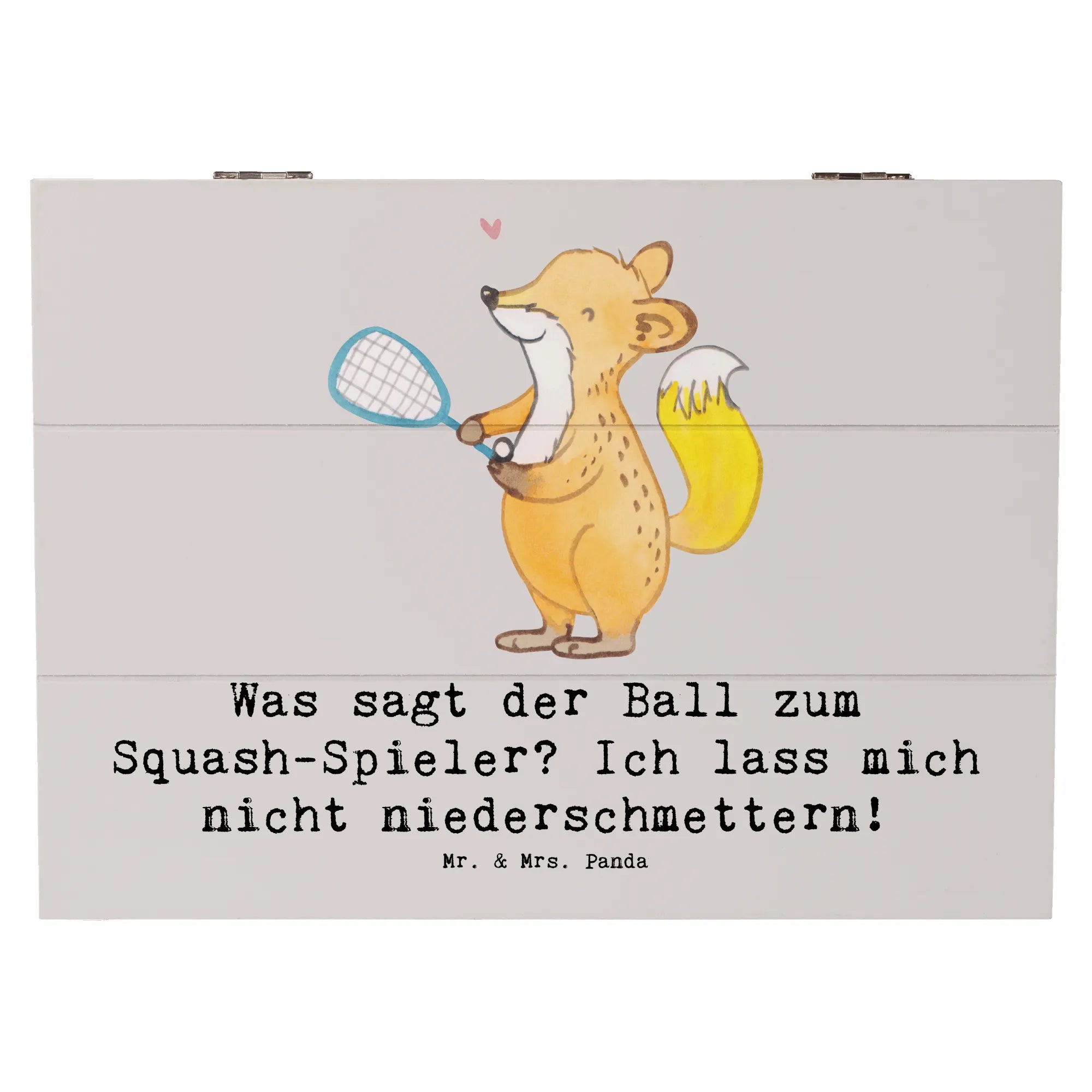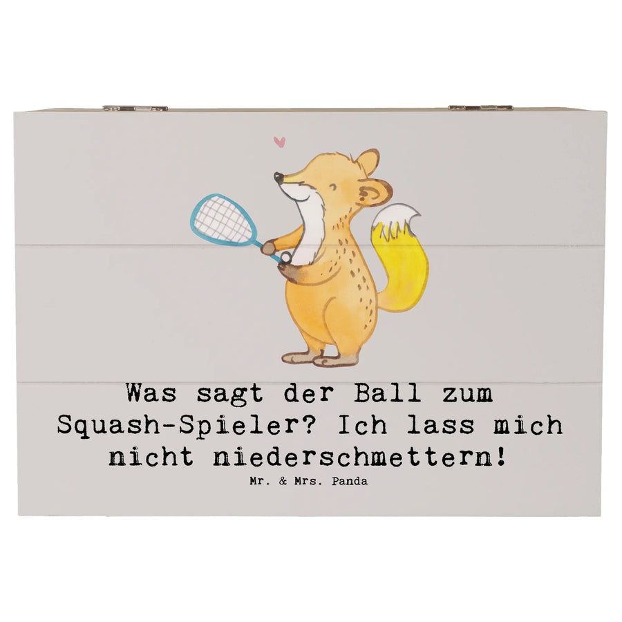 Wooden chest Was sagt der Ball zum Squash-Spieler? Ich lass mich nicht niederschmettern! - 22 x 15 cm - Grey Pastel