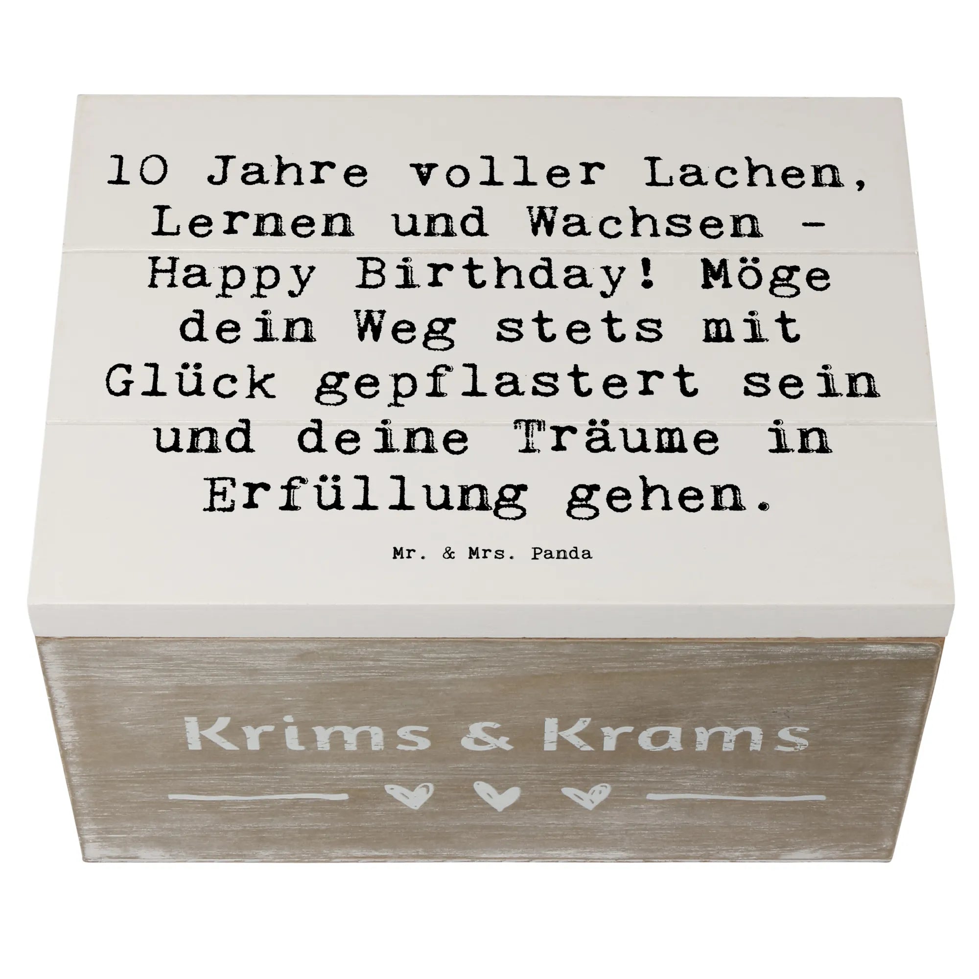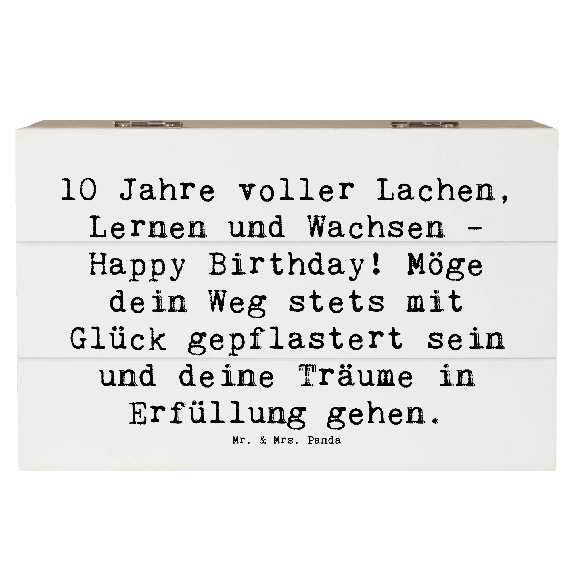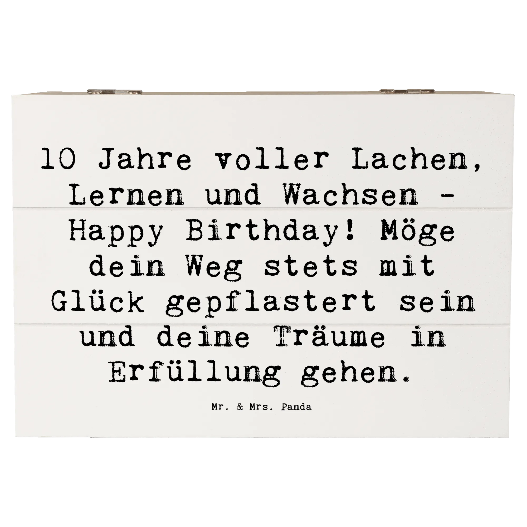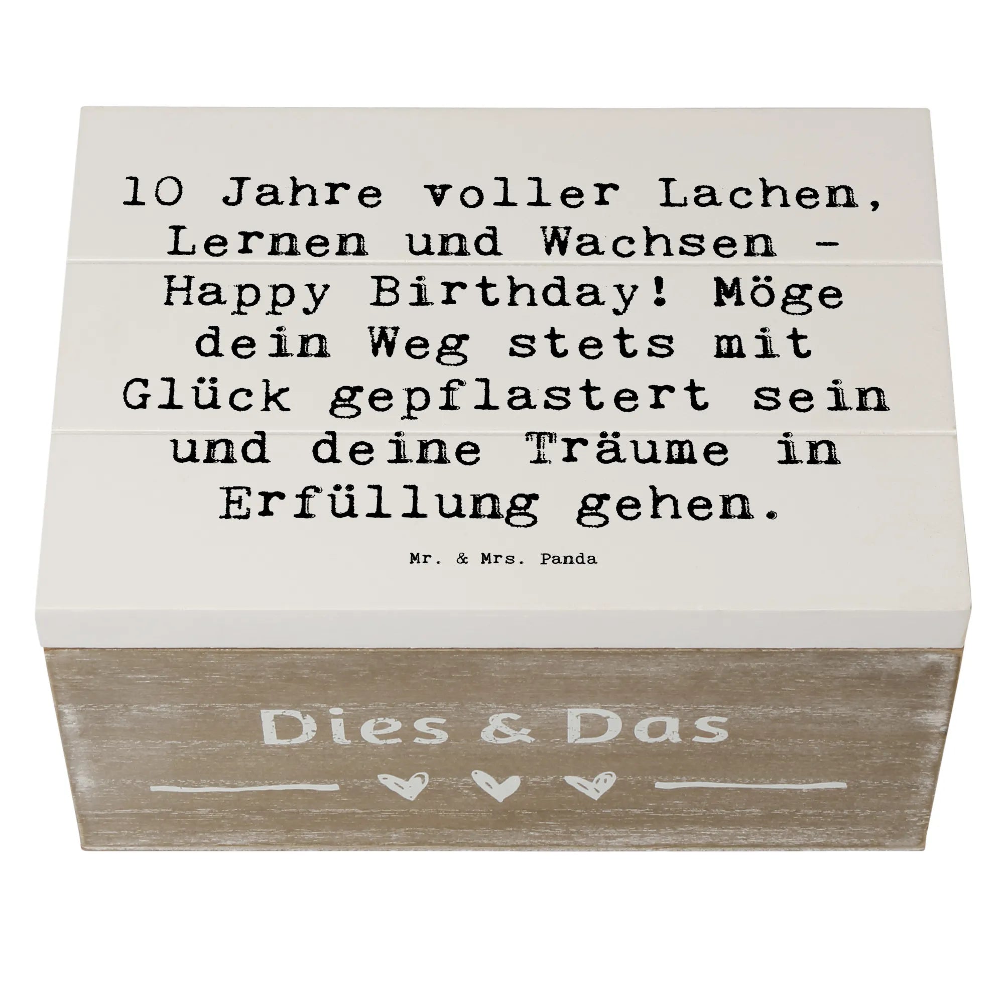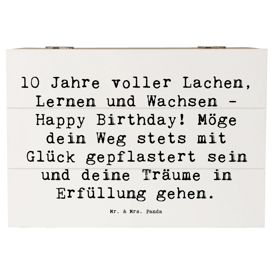 Wooden chest Saying 10 Jahre voller Lachen, Lernen und Wachsen - Happy Birthday! Möge dein Weg stets mit Glück gepflastert sein und deine Träume in Erfüllung gehen. - 22 x 15 cm - White