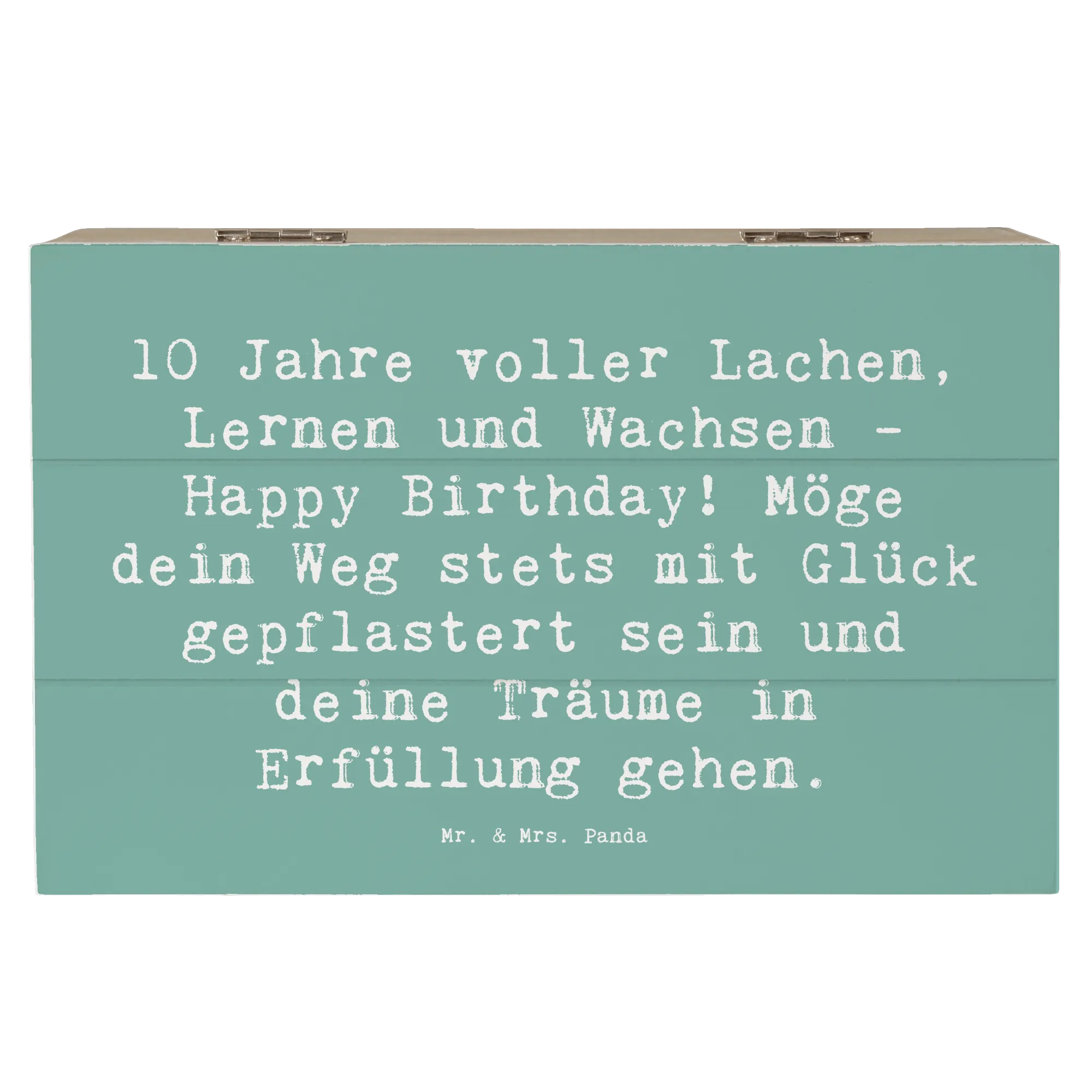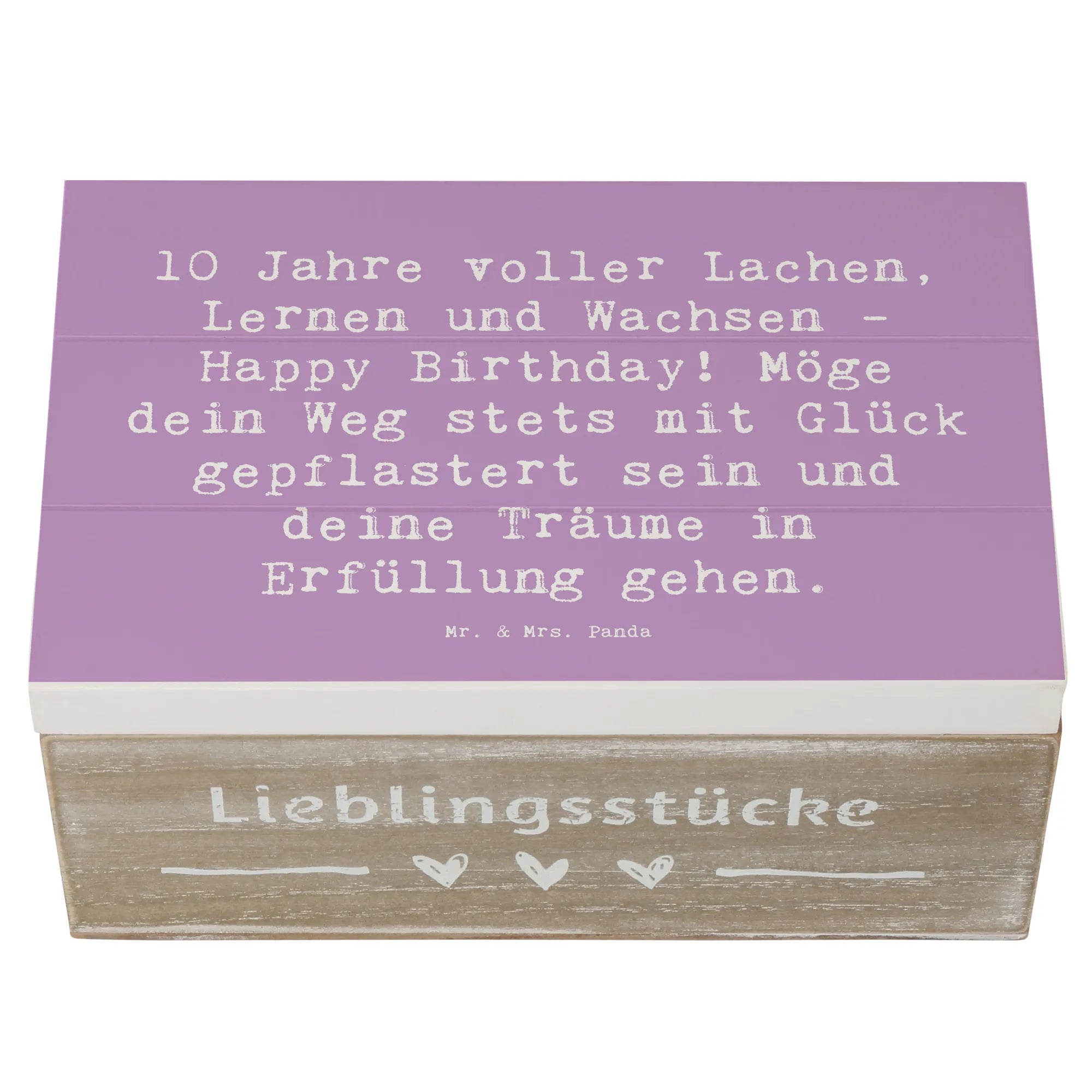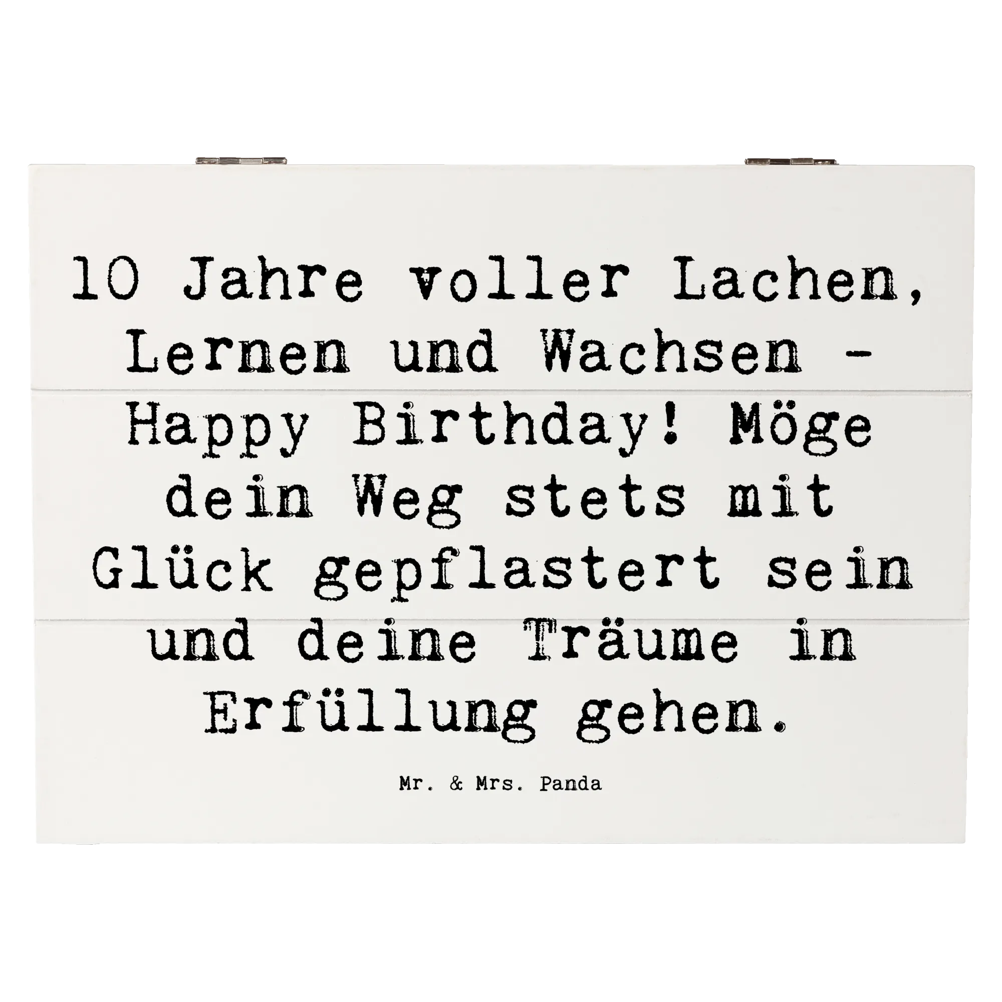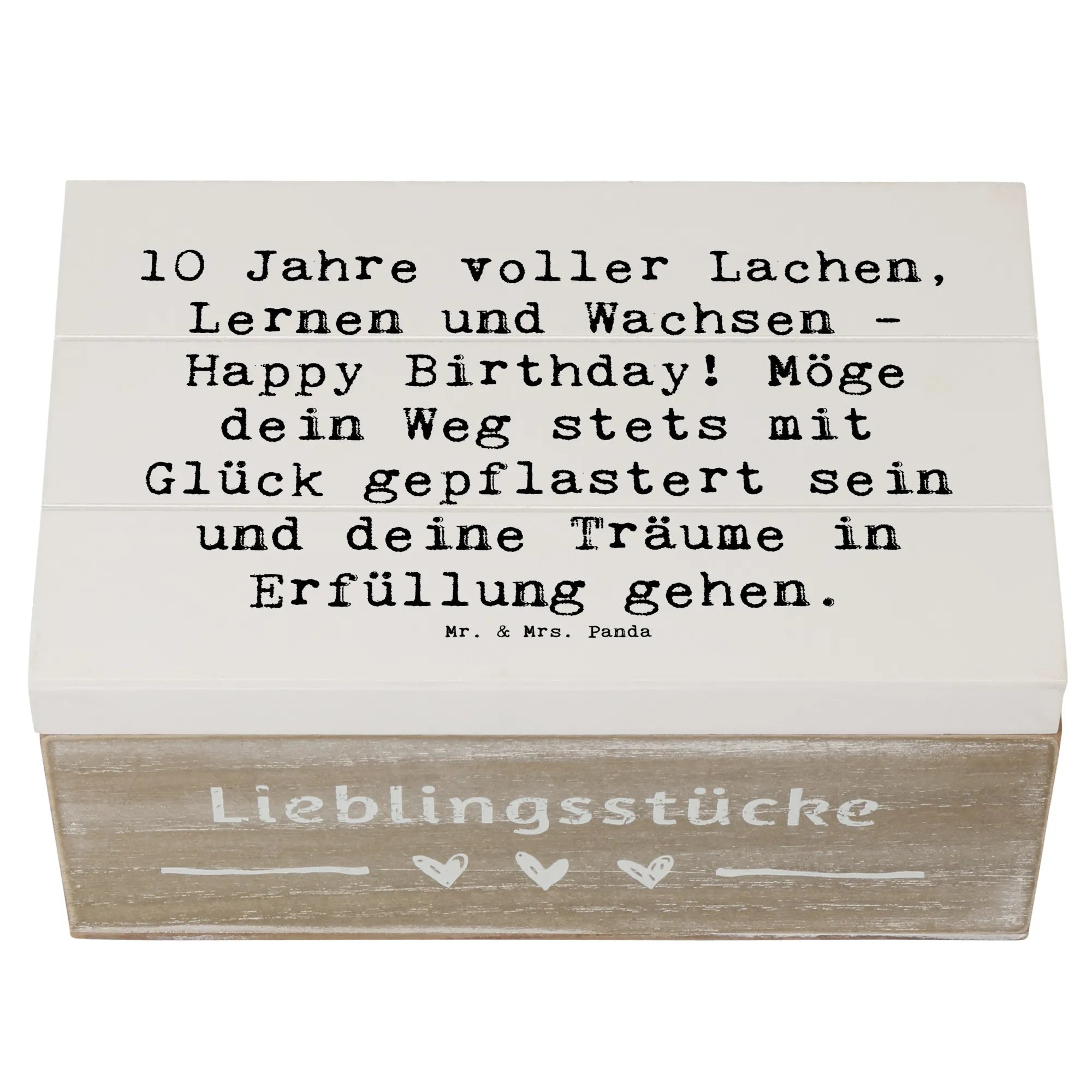 Wooden chest Saying 10 Jahre voller Lachen, Lernen und Wachsen - Happy Birthday! Möge dein Weg stets mit Glück gepflastert sein und deine Träume in Erfüllung gehen. - 22 x 15 cm - White