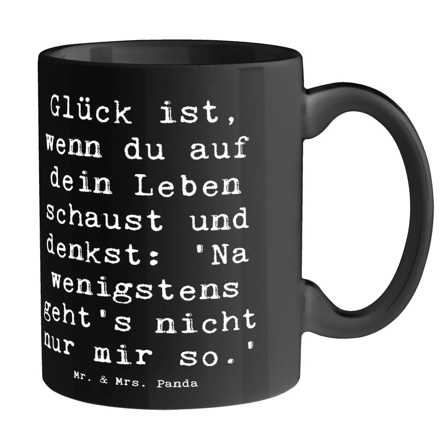 Mug Saying Glück ist, wenn du auf dein Leben schaust und denkst: 'Na wenigstens geht's nicht nur mir so.' - Black