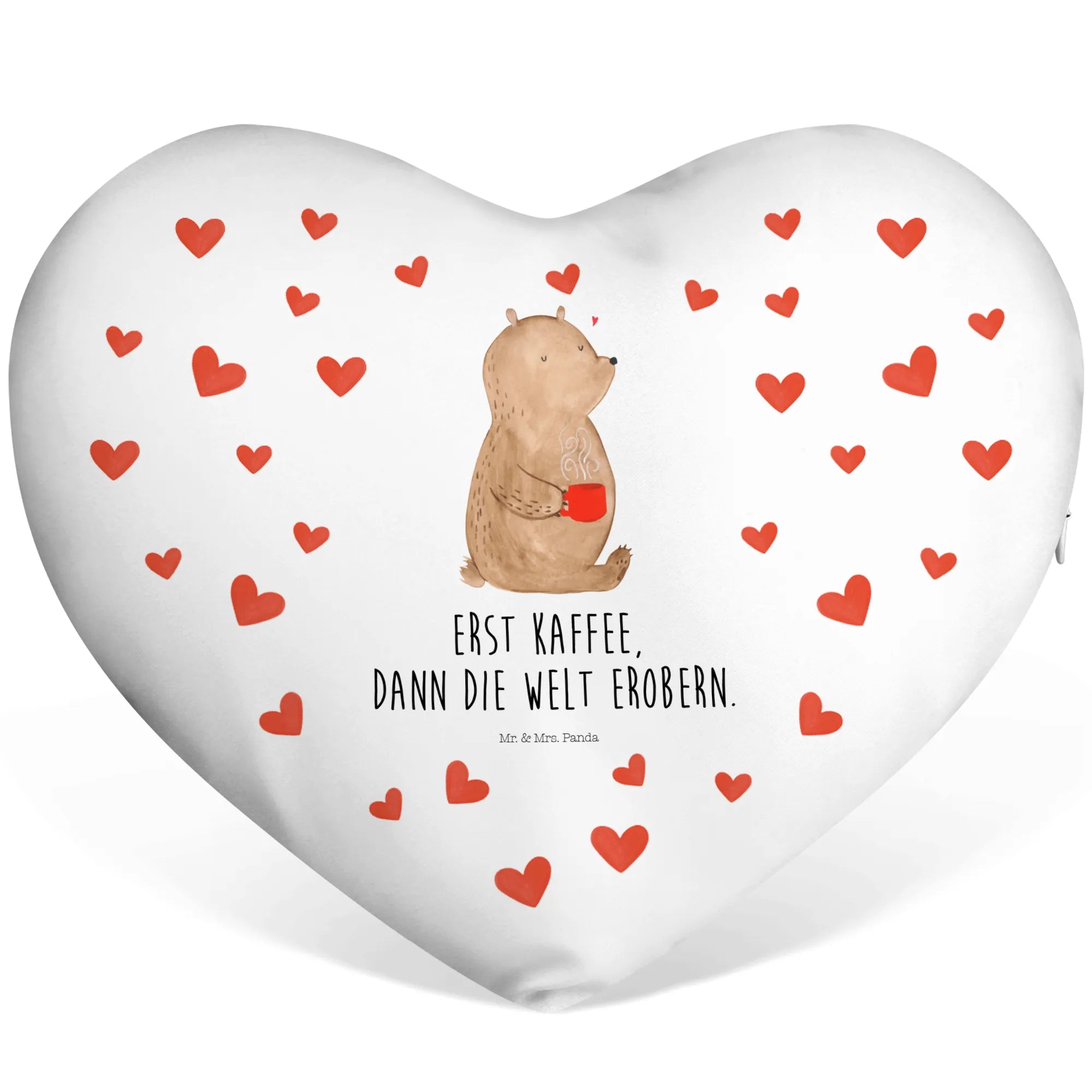 Mr. & Mrs. Panda's Bear Coffee heart cushion is a thoughtful gift for coffee lovers and bears enthusiasts! It's a unique way to sprinkle a bit of joy into the lives of those dear to you. Whether it's a new apartment, a cozy living room, or a whimsical nursery, this cushion fits right in. Sharing the slogan "First coffee, then conquer the world" embodies the spirit of motivation, making this pillow an inspiring addition to anyone's morning routine!