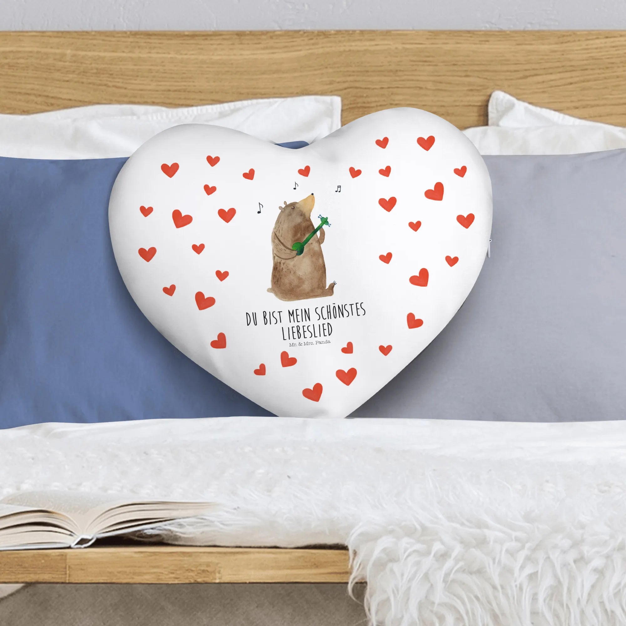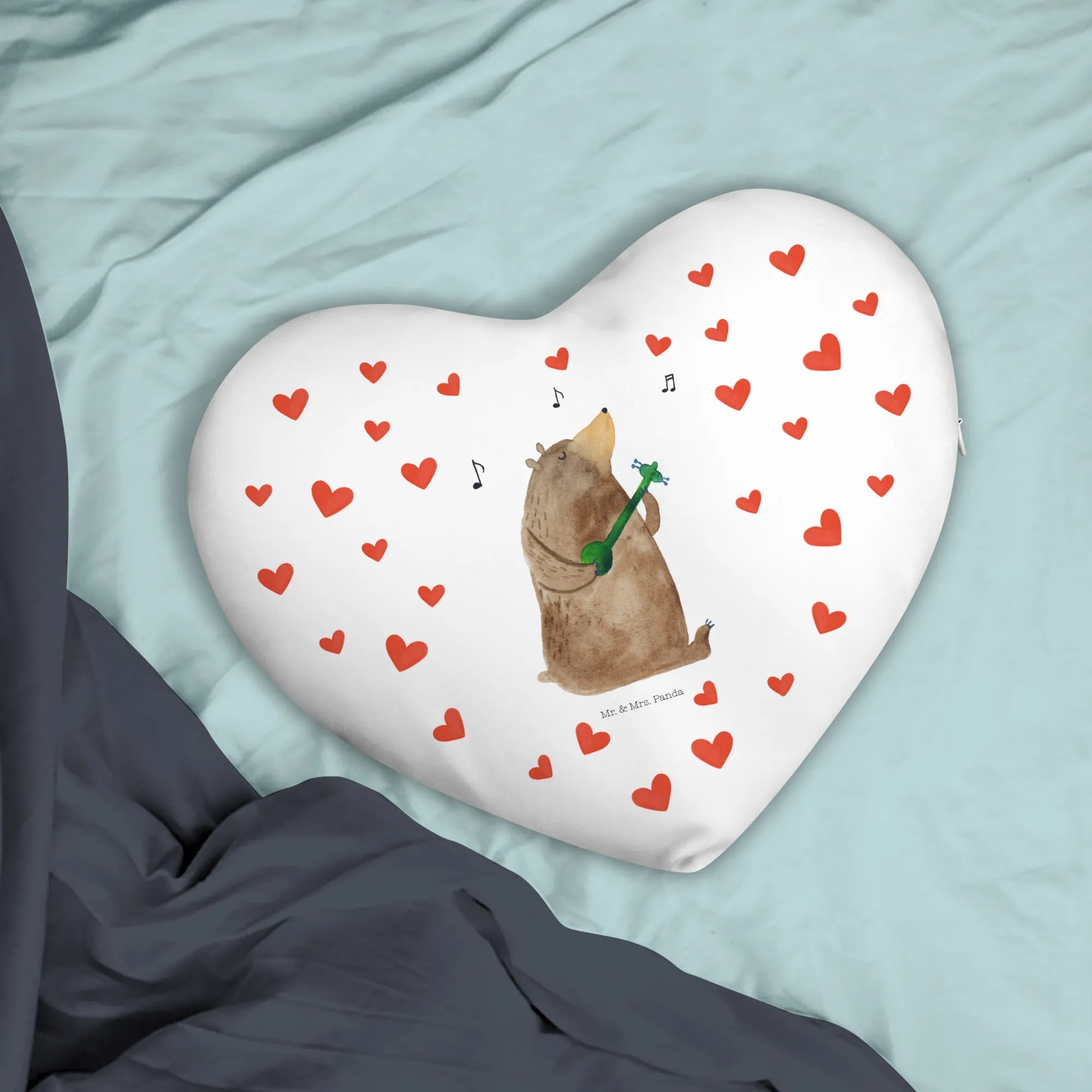 Looking for the perfect gift to express your love? Look no further than the stunning Heart Cushion with the delightful motif of a Bear playing a love song from our charming Bear collection by Mr. & Mrs. Panda!