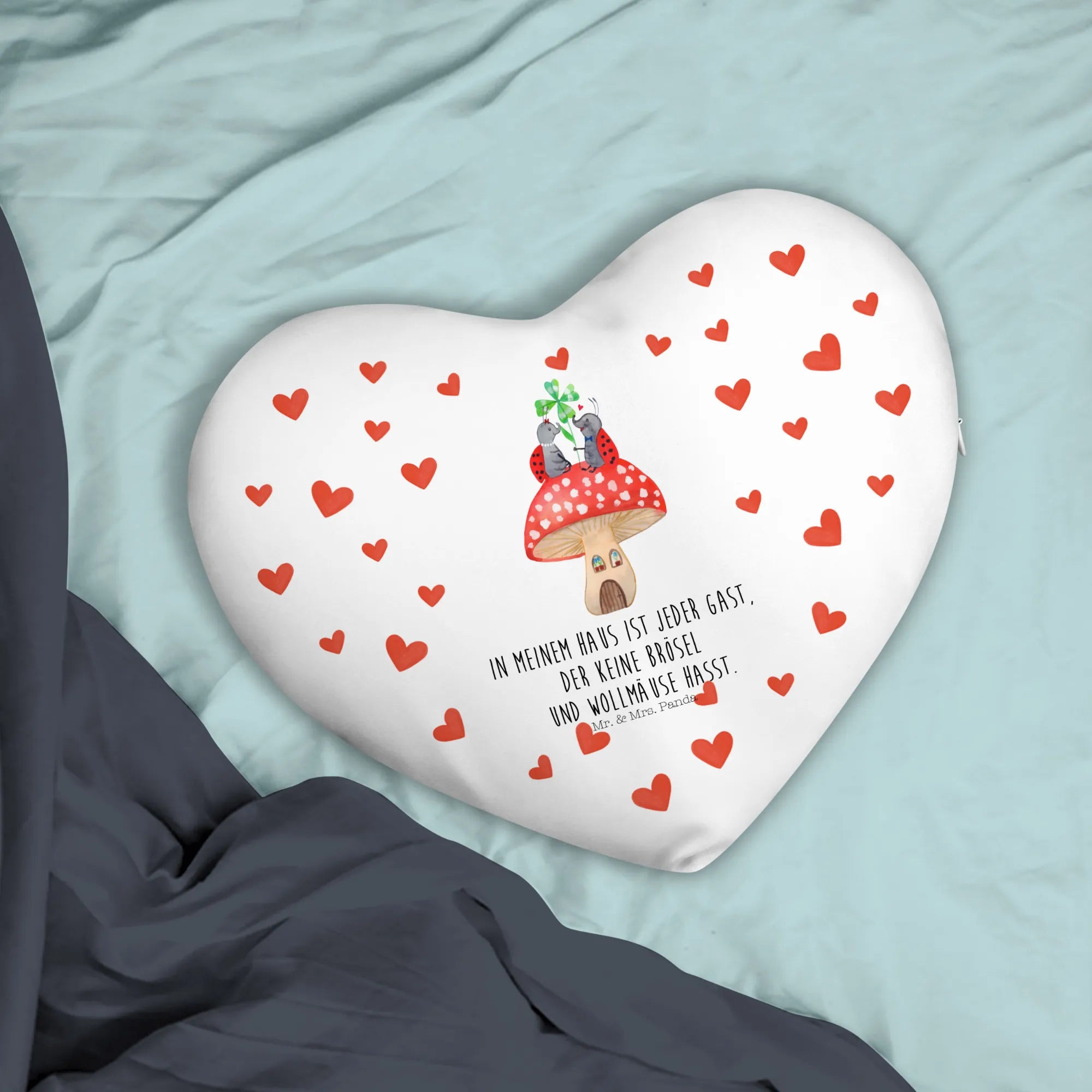 Heart cushion ladybug toadstool - with saying