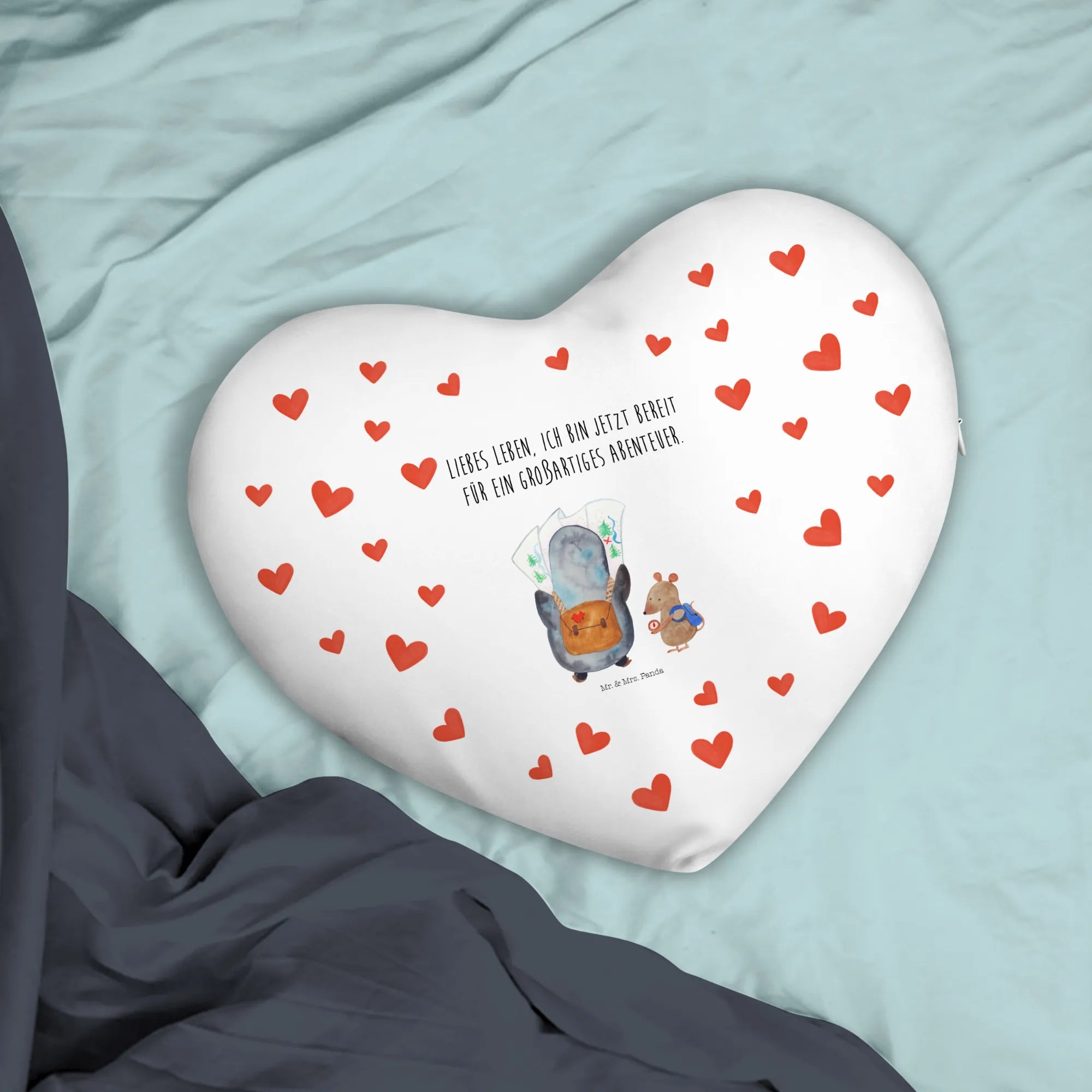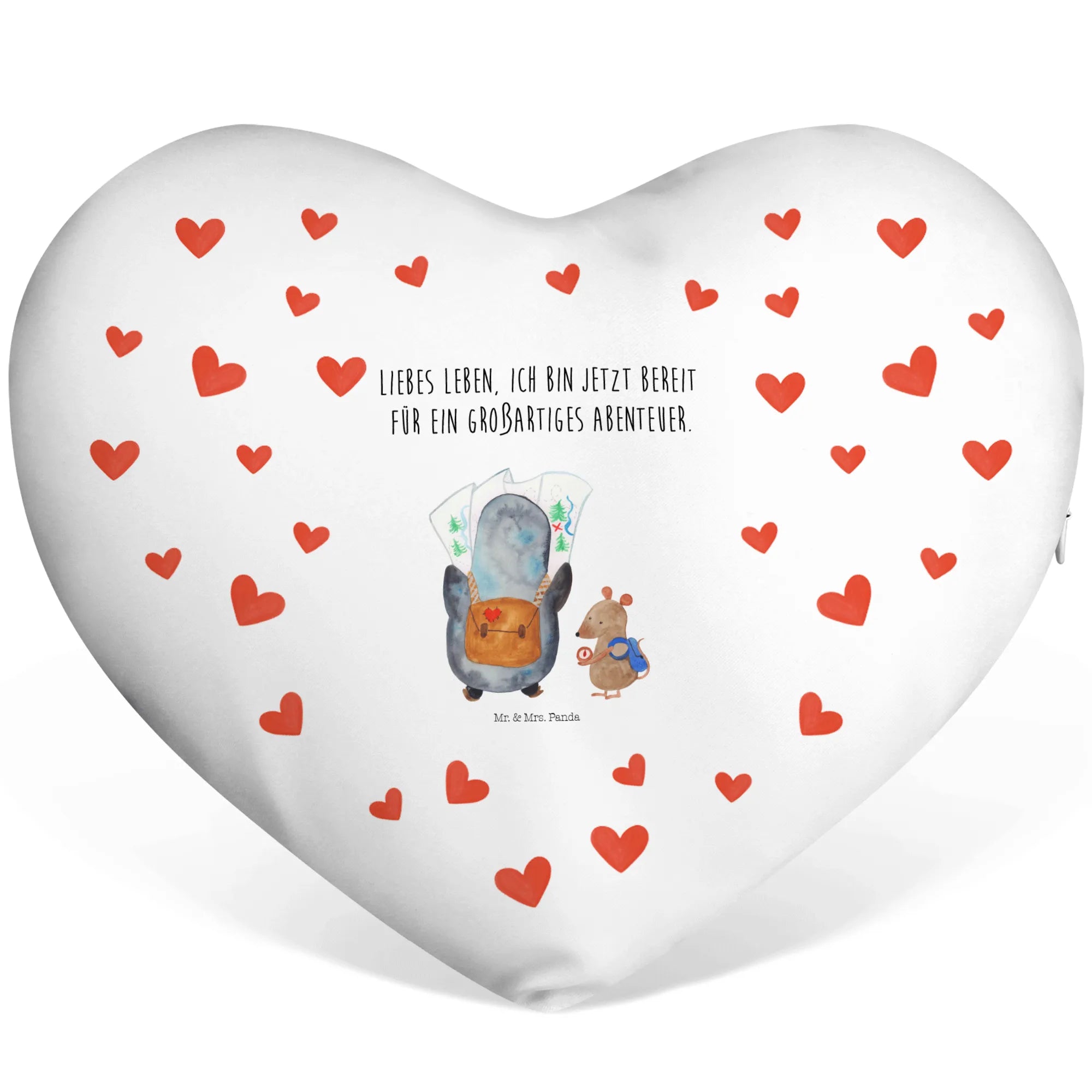 Heart cushion Penguin & Mouse Hiker - with saying