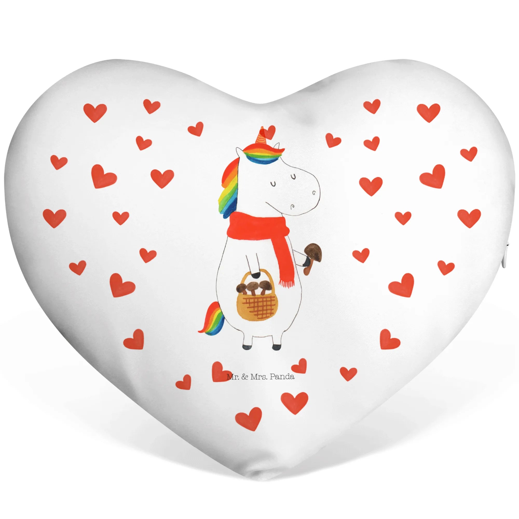 If you're searching for the perfect gift that radiates warmth and joy, look no further than the Heart Cushion with the enchanting Unicorn Mushroom motif from our special Unicorn Collection! This delightful cushion is not just any ordinary pillow; it’s a whimsical creation that features a charming unicorn exploring a magical forest in search of mushrooms. Hand-drawn with love by Mrs. Panda, this unique design is sure to captivate the hearts of anyone who sees it.