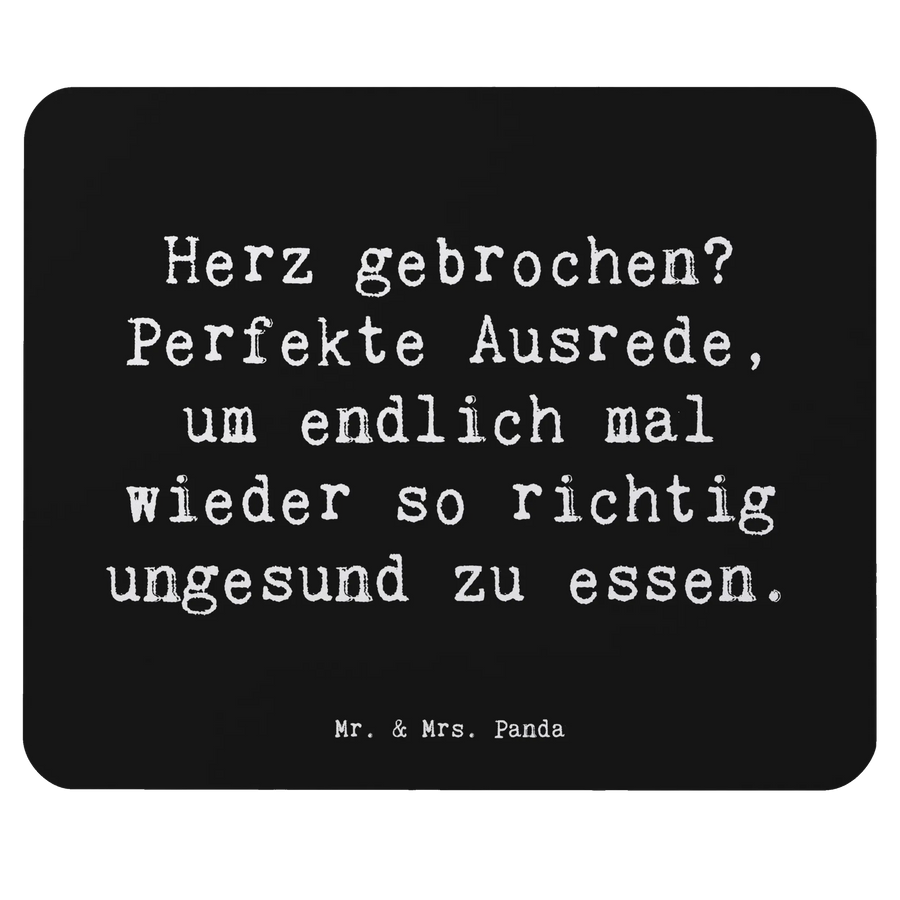 Mouse mat Saying Herz gebrochen? Perfekte Ausrede, um endlich mal wieder so richtig ungesund zu essen. - Natural rubber - Black