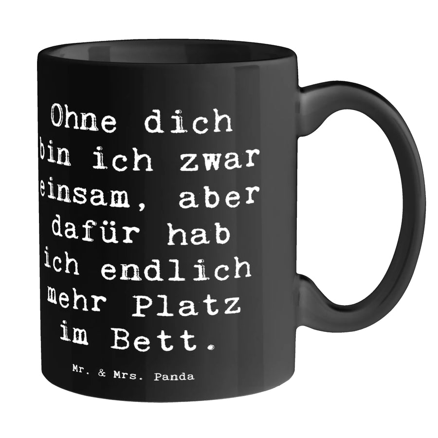 Mug Saying Ohne dich bin ich zwar einsam, aber dafür hab ich endlich mehr Platz im Bett. - Black