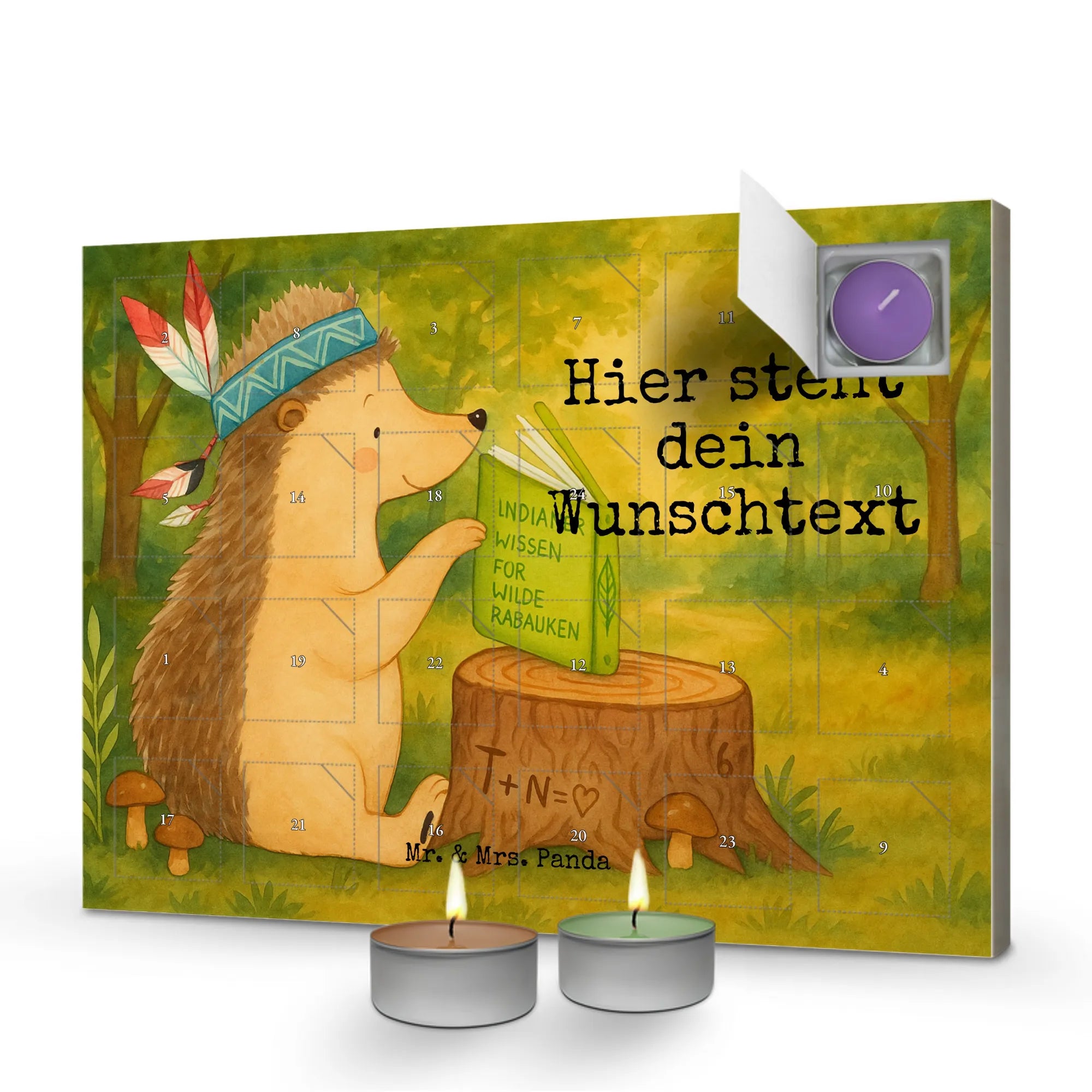 Discover the magic of the pre-Christmas season with our 'Personalized Scented Candle Advent Calendar' from Mr. & Mrs. Panda. Enchantingly adorned with beautiful quotes and motifs, this unique Advent calendar can be personalized with a message or name of your choice. Be captivated by Mrs. Panda's charming drawings on the front and a new festive scent behind every door, including vanilla, lavender, and apple-cinnamon. A sturdy box that can be hung up or displayed completes the experience.