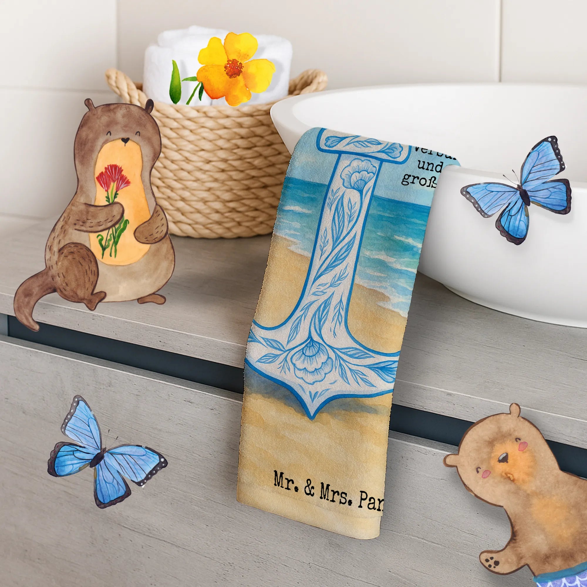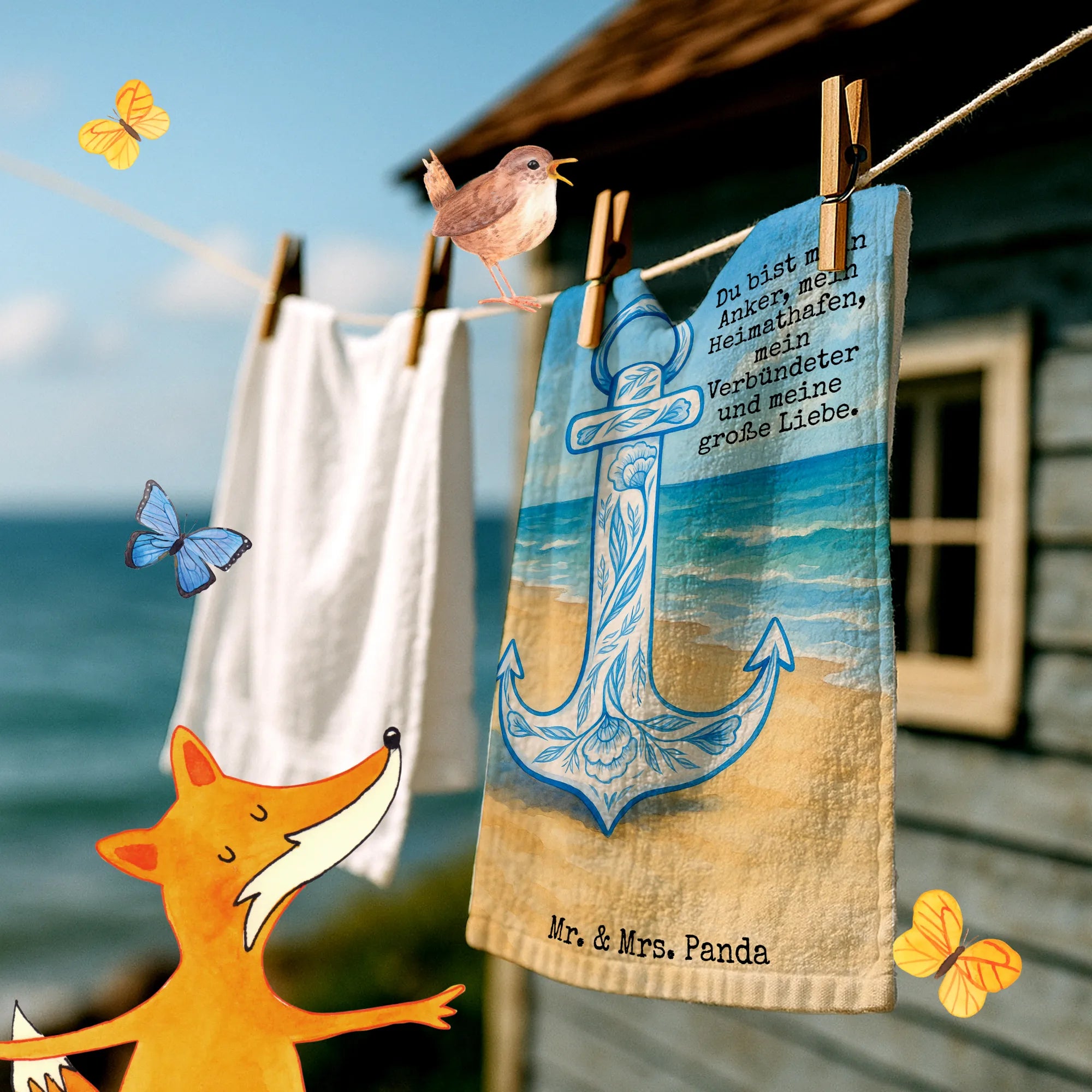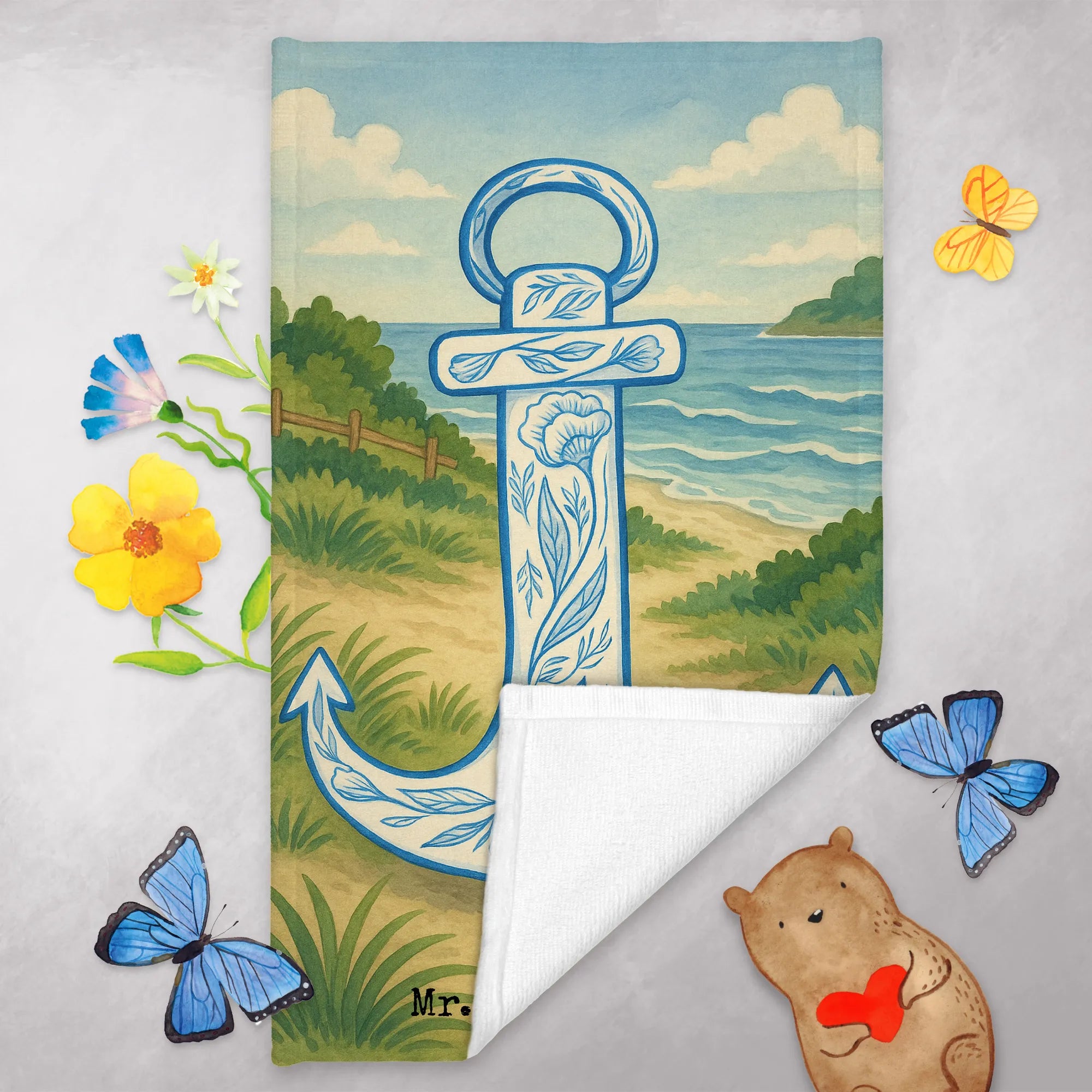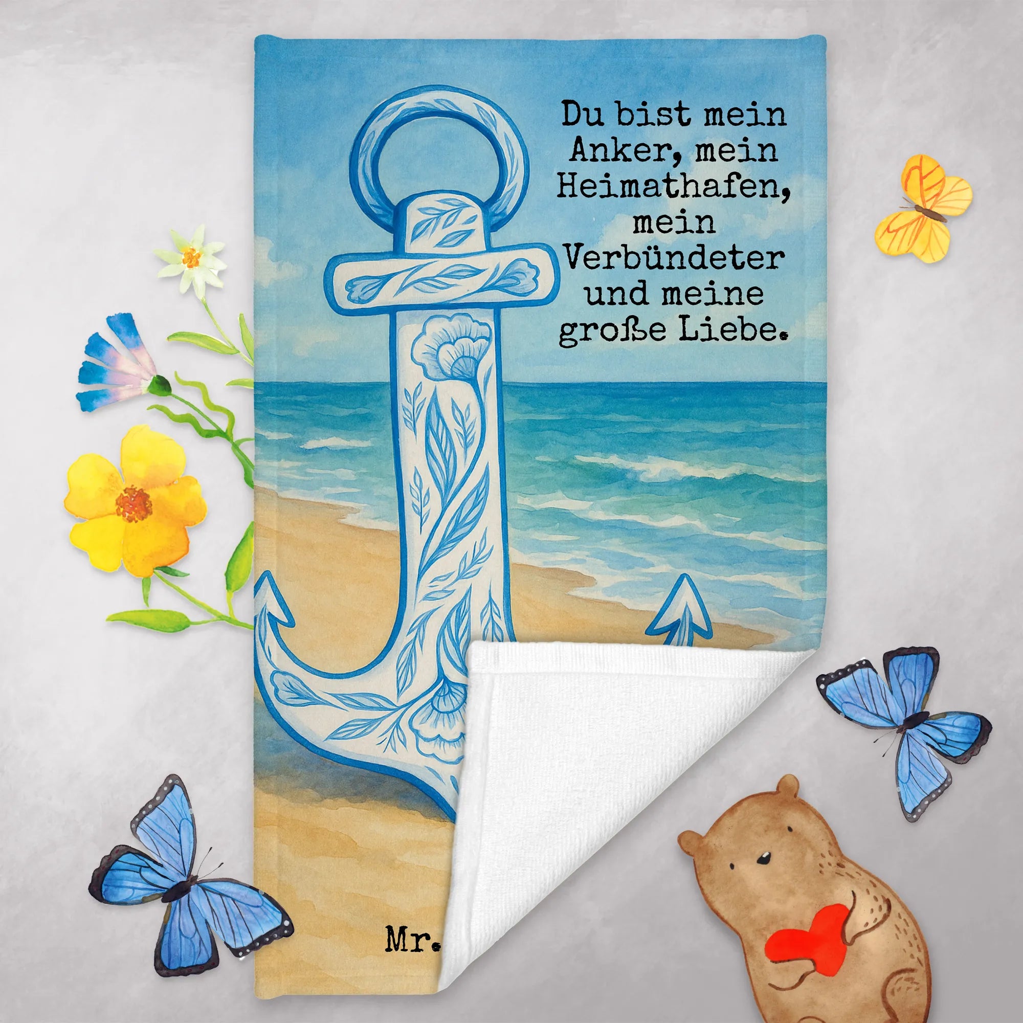 Guest towel anchor Blue Design - with a saying