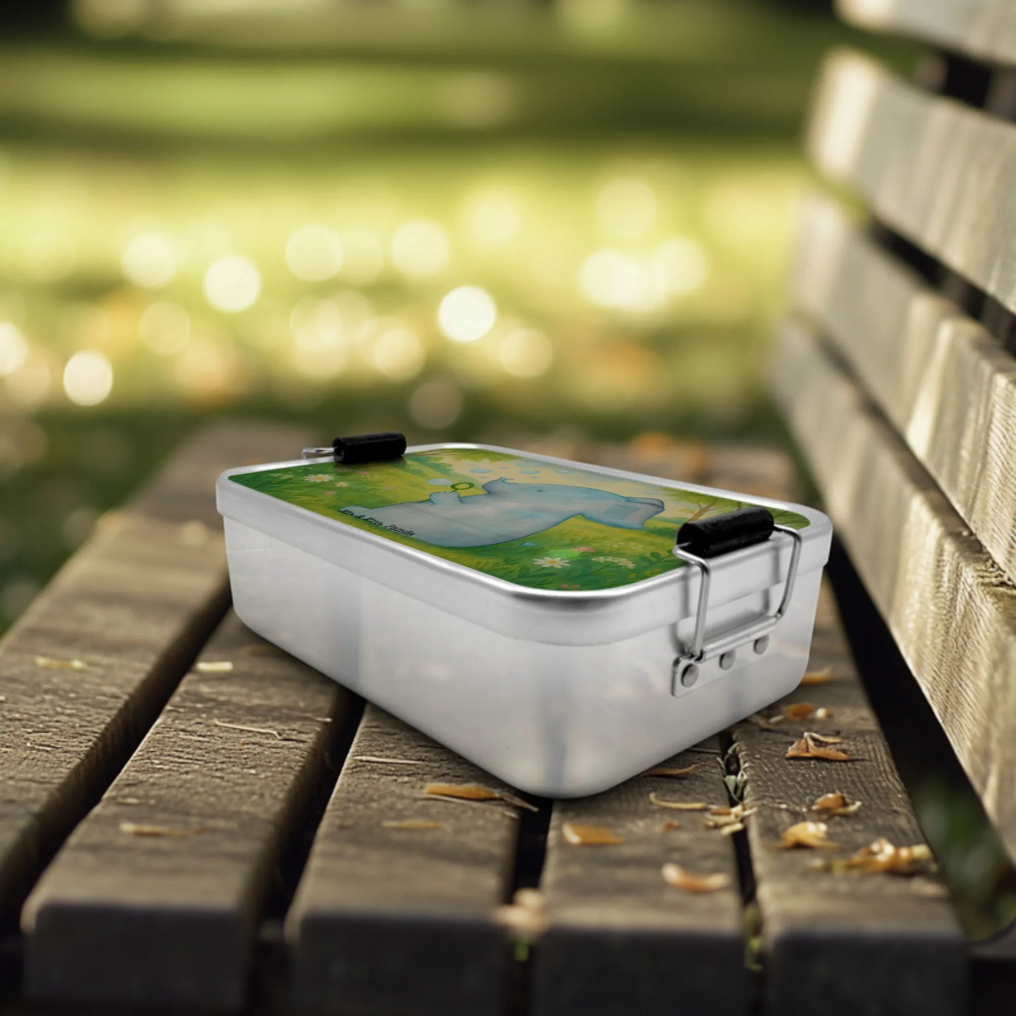 Die weiße, helle Oberfläche lässt die Farben des Elefanten und der Seifenblasen besonders schön zur Geltung kommen. Die Metall Brotbox ist perfekt als Geschenk zum Schulanfang, Geburtstag, Weihnachten oder einfach als liebevolle Überraschung für Freunde und Familie.