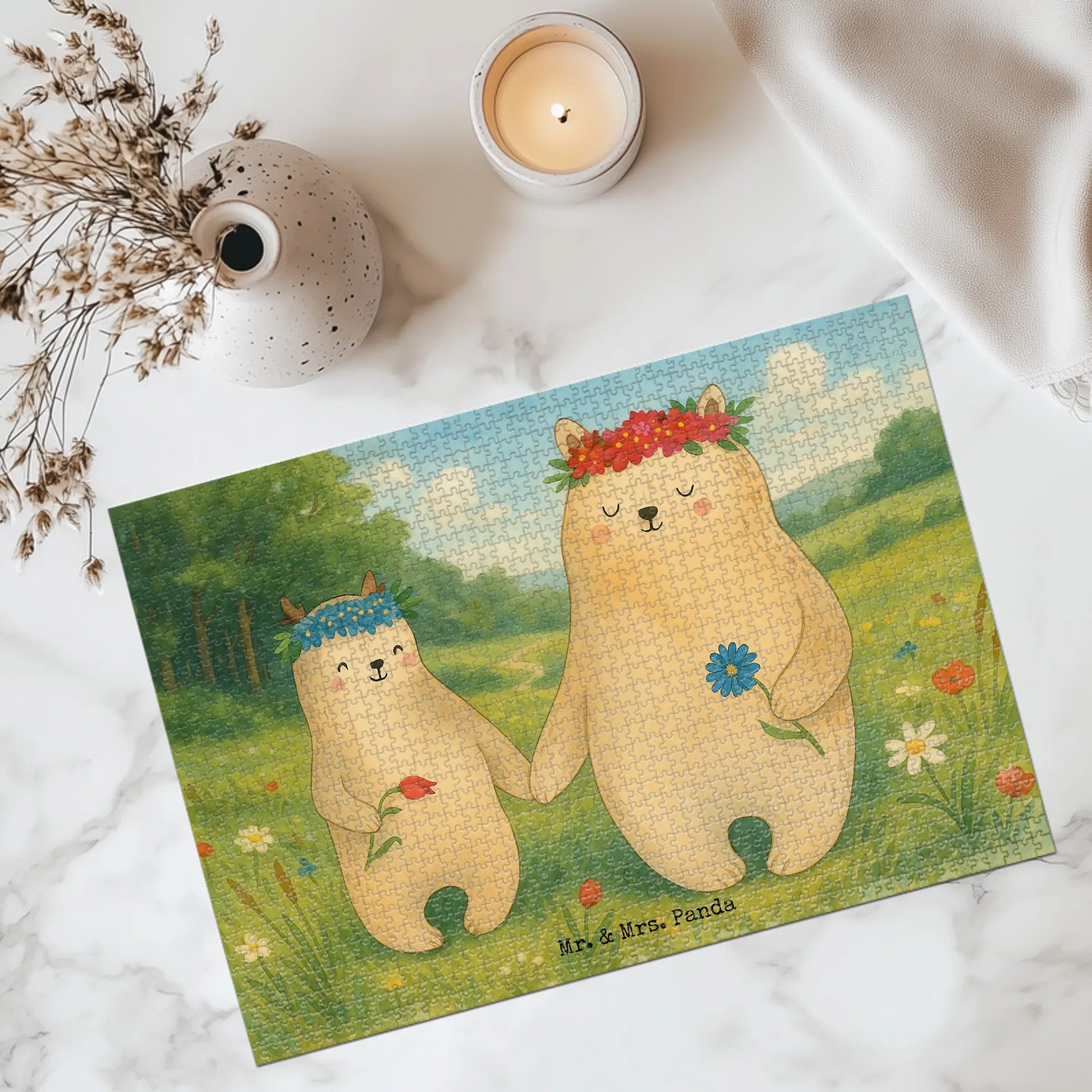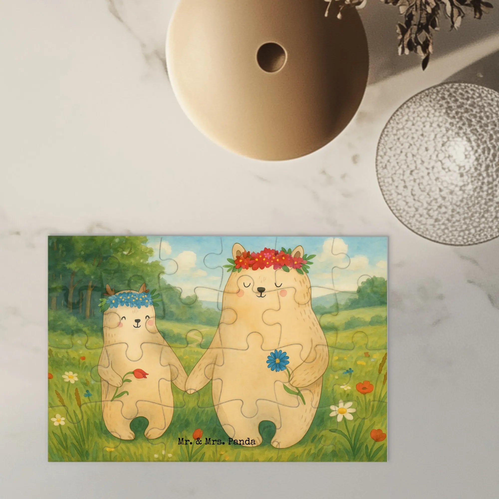Puzzle Bären mit Blumenkranz Design Puzzle, Familie, Vatertag, Muttertag, Bruder, Schwester, Mama, Papa, Oma, Opa, Bär, Bären, Mutter, Mutti, Mami, Lieblingsmensch, Lieblingsmama, beste Mutter, weltbeste Mama, Geschenk Mama. Muttertag, Tochter, Kind, Kinder, Töchter, Family, Vorbild