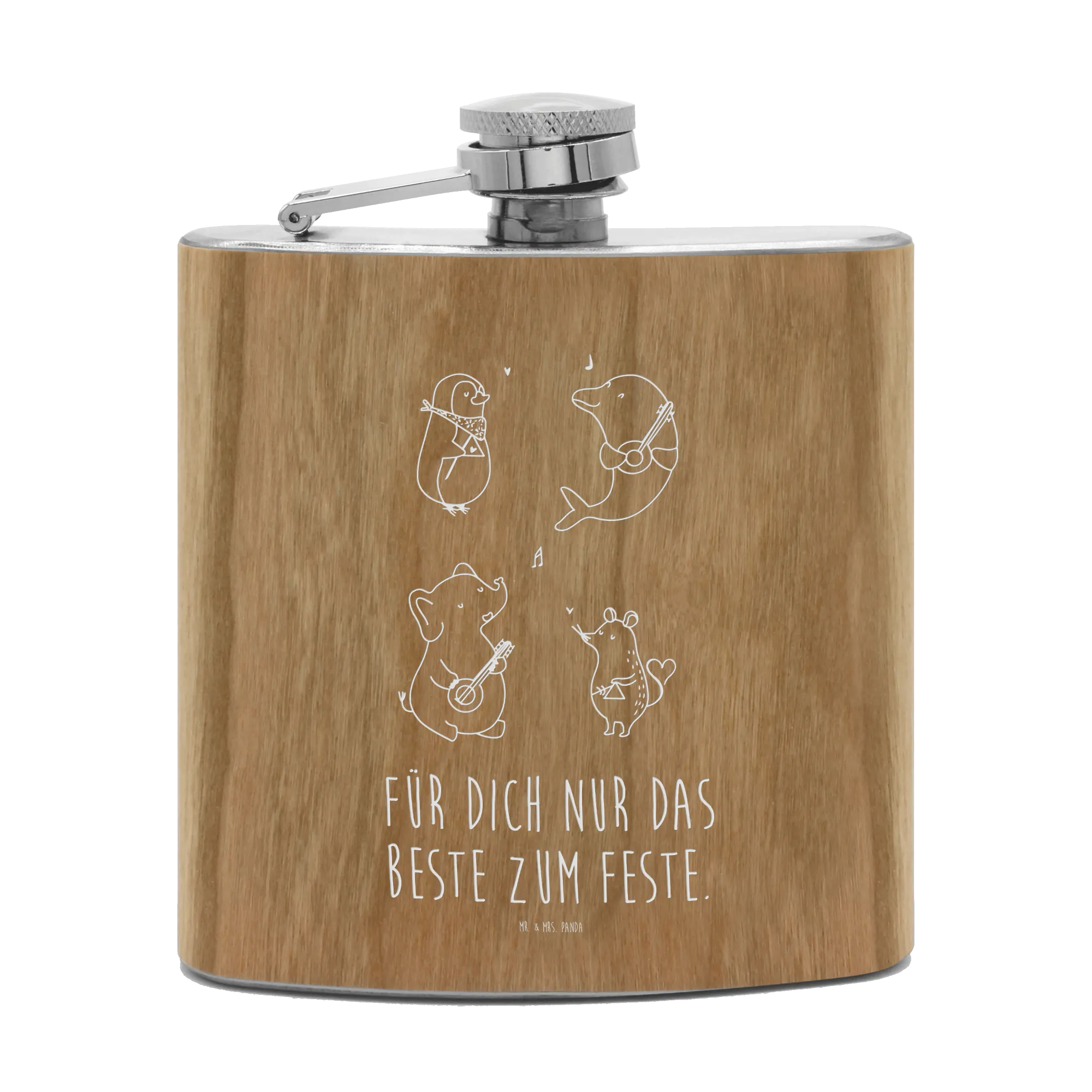 Introducing the perfect blend of charm, practicality, and style - the Mr. & Mrs. Panda Hip Flask featuring the delightful Big Band motif from our beloved Small World collection! This high-quality stainless steel flask is not only luxurious but also highly functional, making it an exceptional gift for animal lovers, music enthusiasts, or anyone who enjoys a touch of whimsy in their daily life.