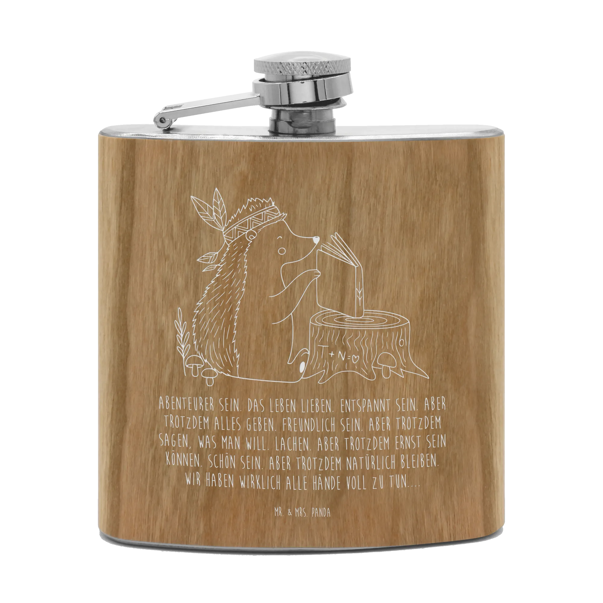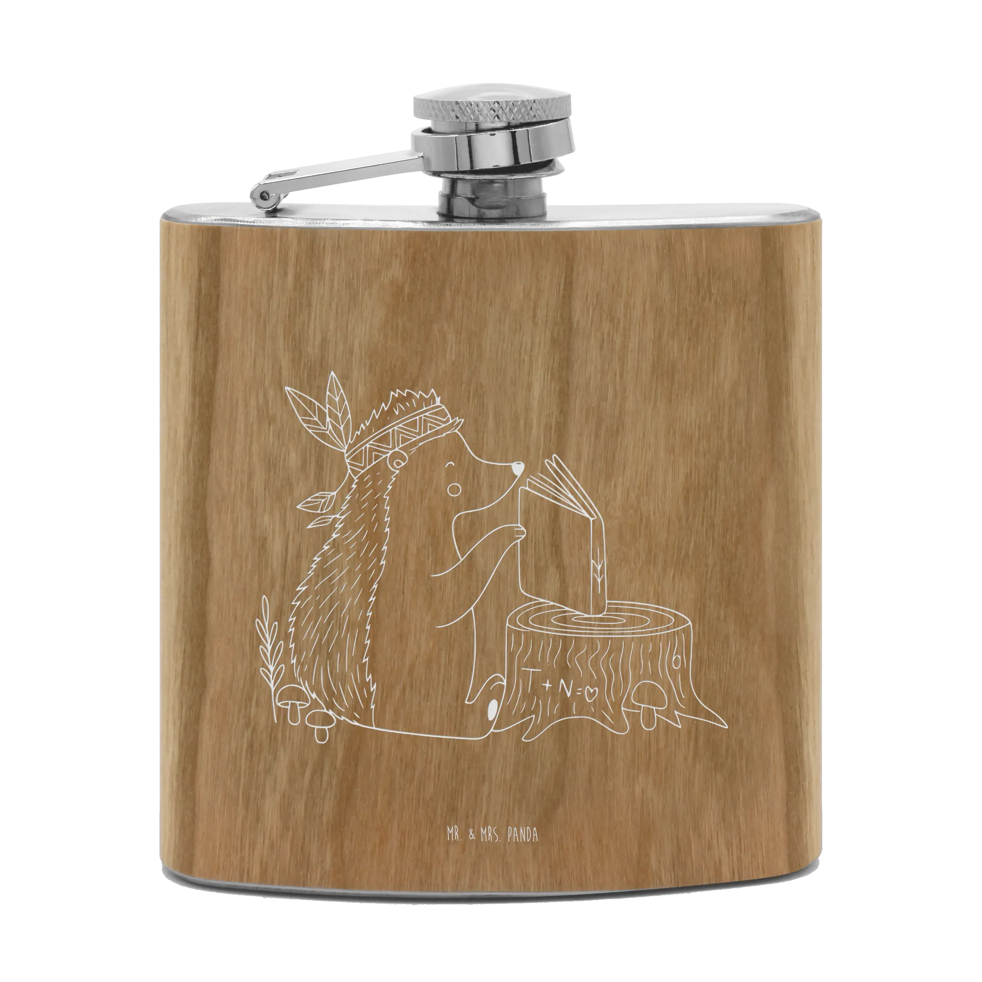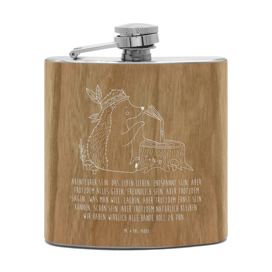 Meet the Mr. & Mrs. Panda Hipflask—your new favorite accessory for all occasions! Crafted from premium stainless steel and adorned with a chic wood laminate, this flask can hold 150 ml (5 oz) of your favorite beverage. At 109 mm (4 inch) tall, 93 mm (4 inch) wide, and 22 mm (1 inch) thick, it’s designed for convenience and ease of transport. Featuring delightful engravings of whimsical quotes and cute motifs, this flask will make a wonderful gift for friends. It's the perfect companion for a bachelor or bachelorette party, or for outdoor adventures like hiking! Light and practical, the hipflask fits nicely in your hand and is fitted with a secure screw cap. Remember, it’s not dishwasher safe, so just swish it out with hot water for a quick clean! Elevate your drink game with the stylish Mr. & Mrs. Panda Hipflask!
