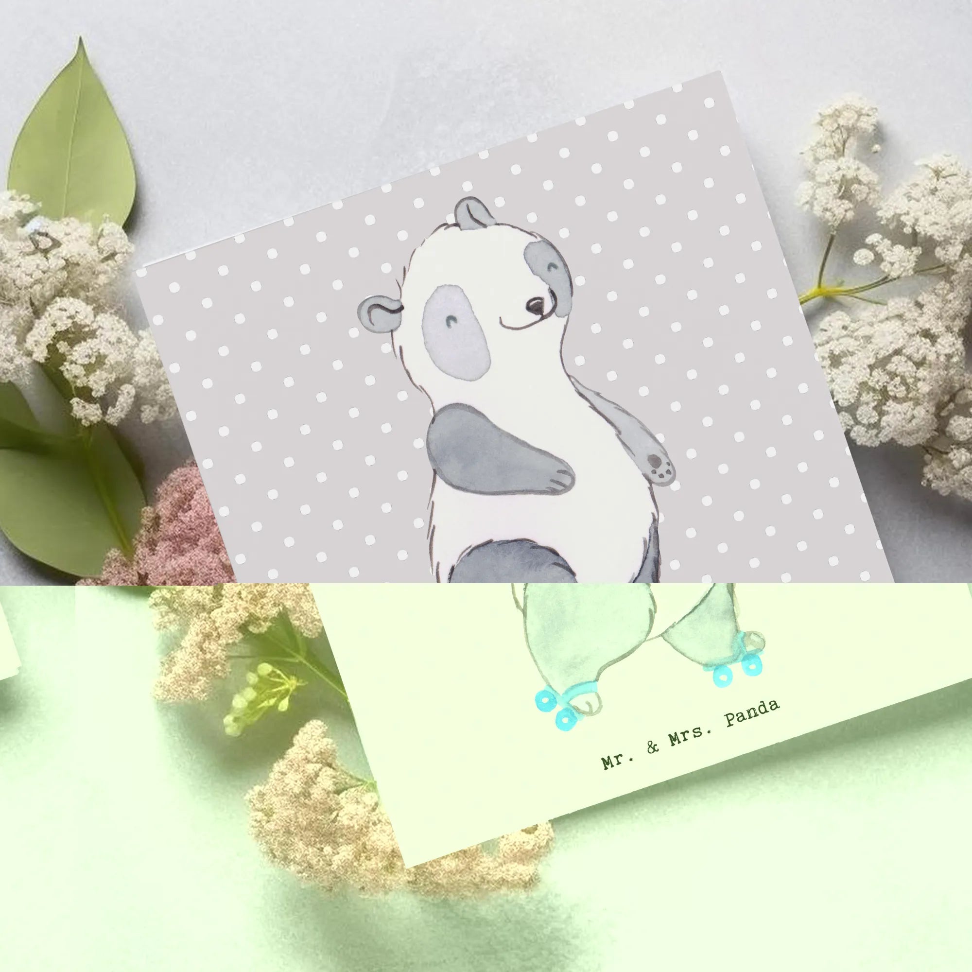 Deluxe Card panda roller blading - with saying - Pastel Gray