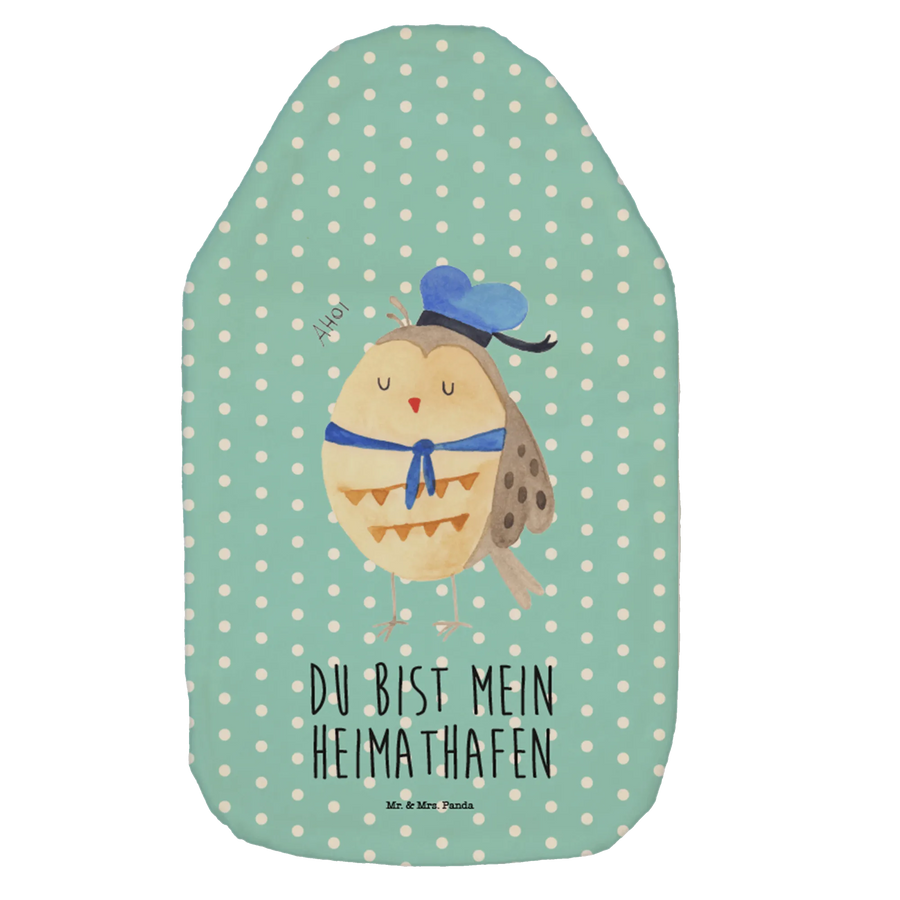 Hot water bottle Owl sailor - with a saying - Turquoise Pastel