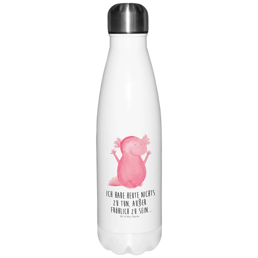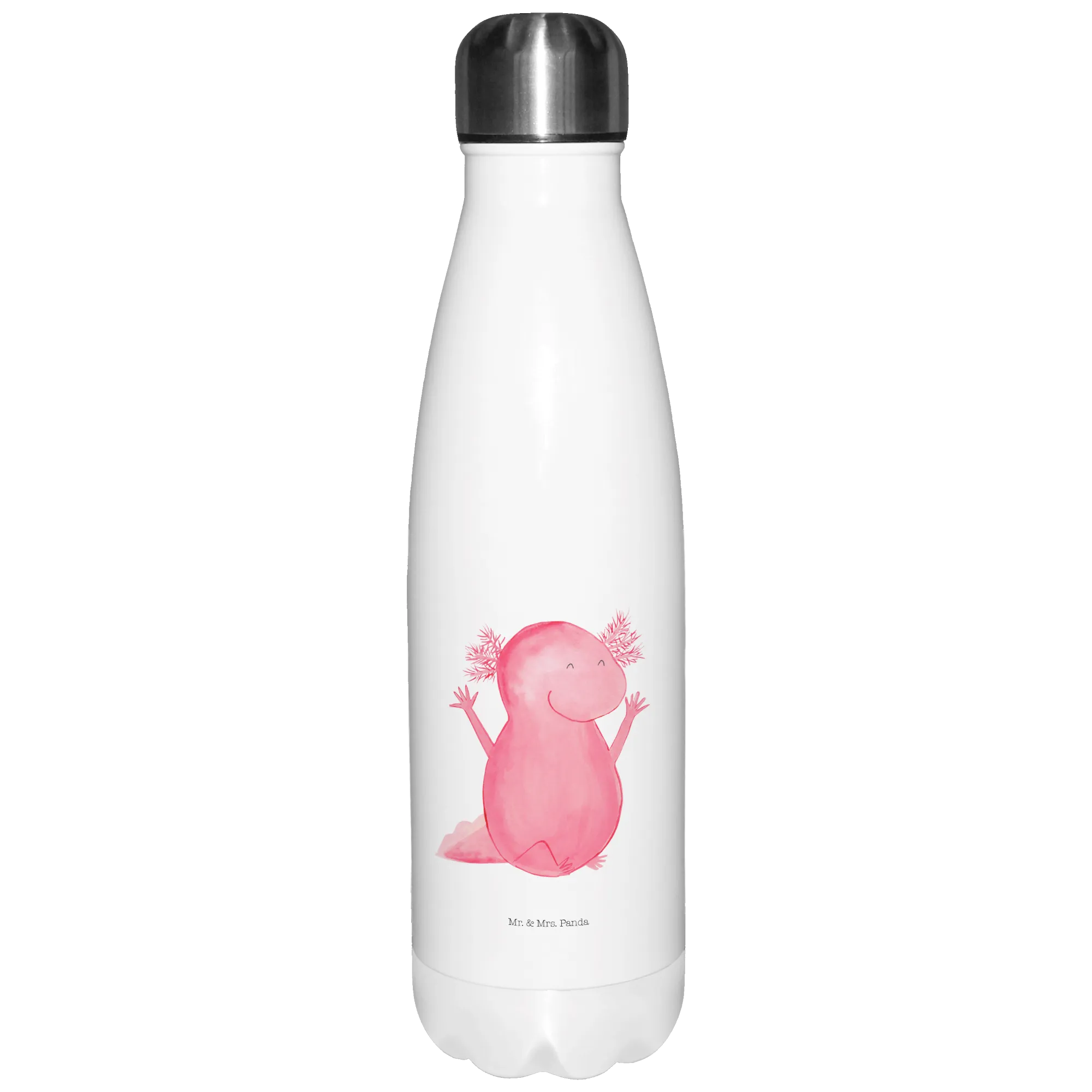 What makes our Axolotl bottle extra special is its adorable design. The cheery axolotl, hand-drawn in our signature panda style by Mrs. Panda, is sure to bring a smile to anyone's face. With its charming upward-reaching arms, this little amphibian radiates positivity and motivation—perfect for anyone needing a bit of cheer in their daily life.